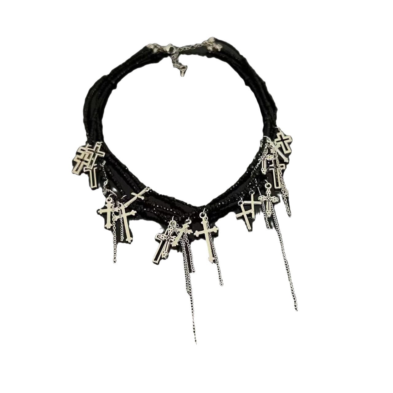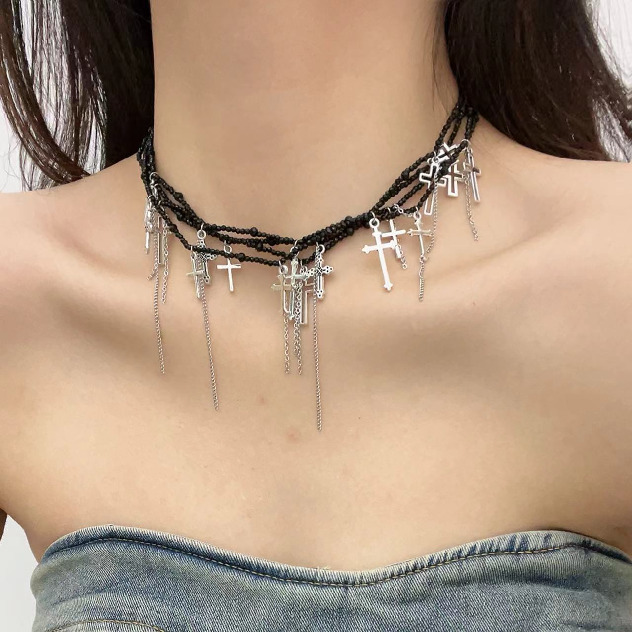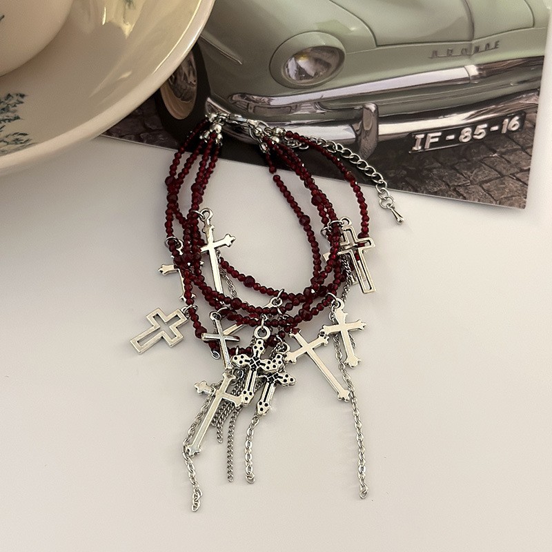 European and American Dark Cross Tassel Multi-layer Beaded Necklace Bracelet Niche Elegant Sexy Light Luxury High-end Jewelry for Women