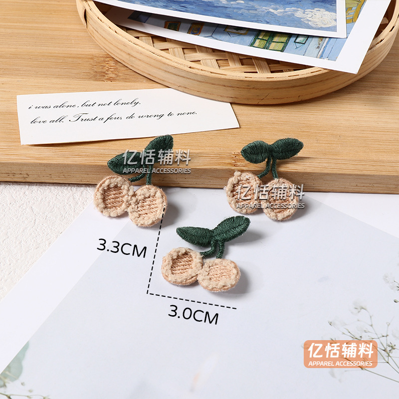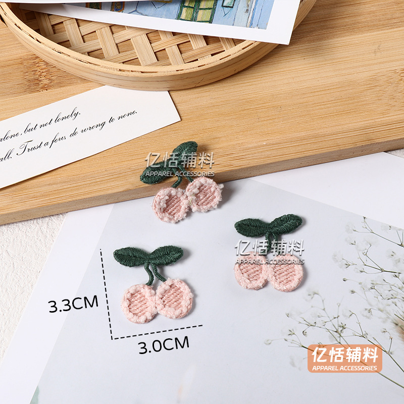 All-Match Plush Edge Cherry Embroidery Cloth Wool Clothes Shoes Hats Socks Trouser Edge Decoration Accessories Hair Jewelry Material