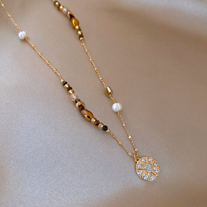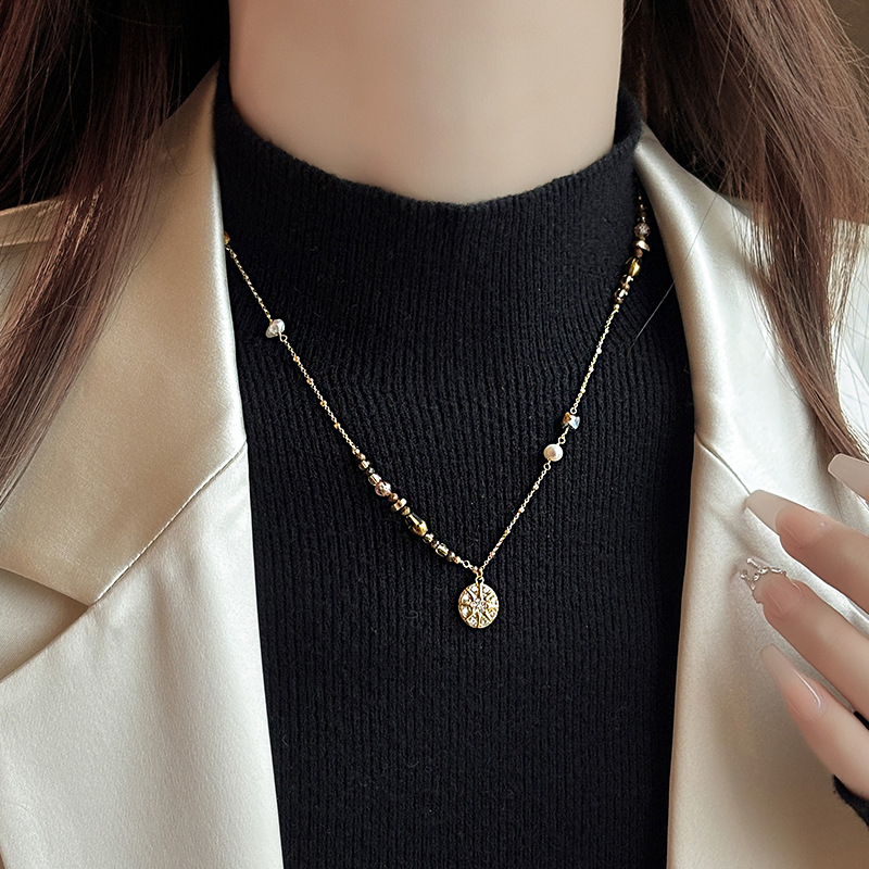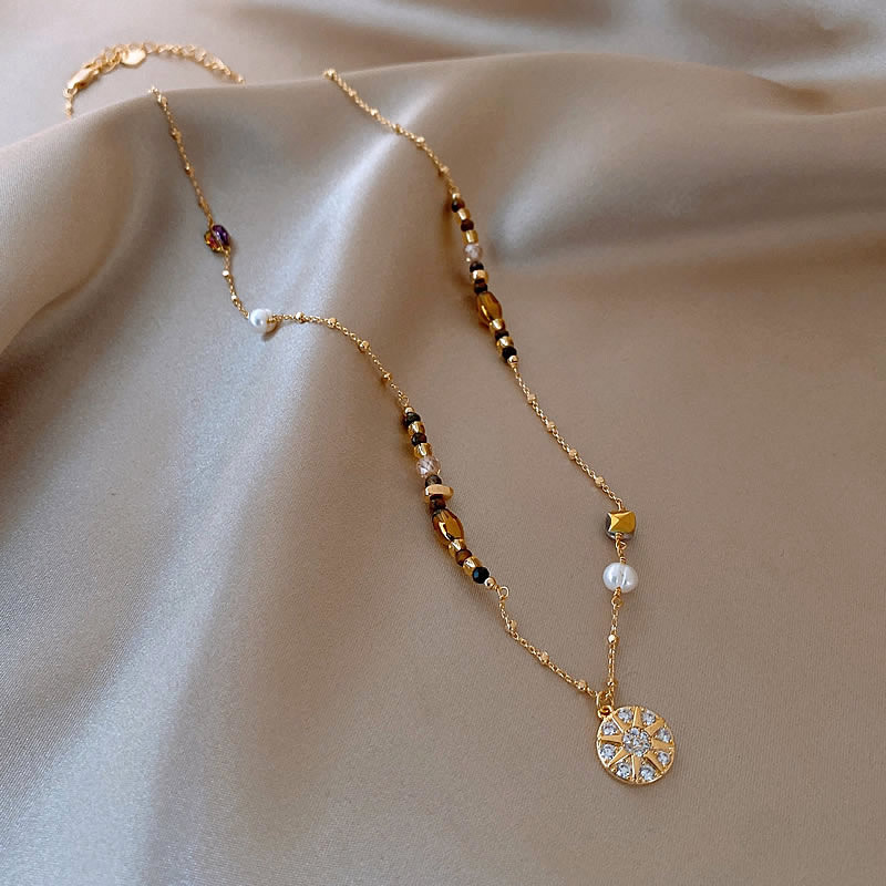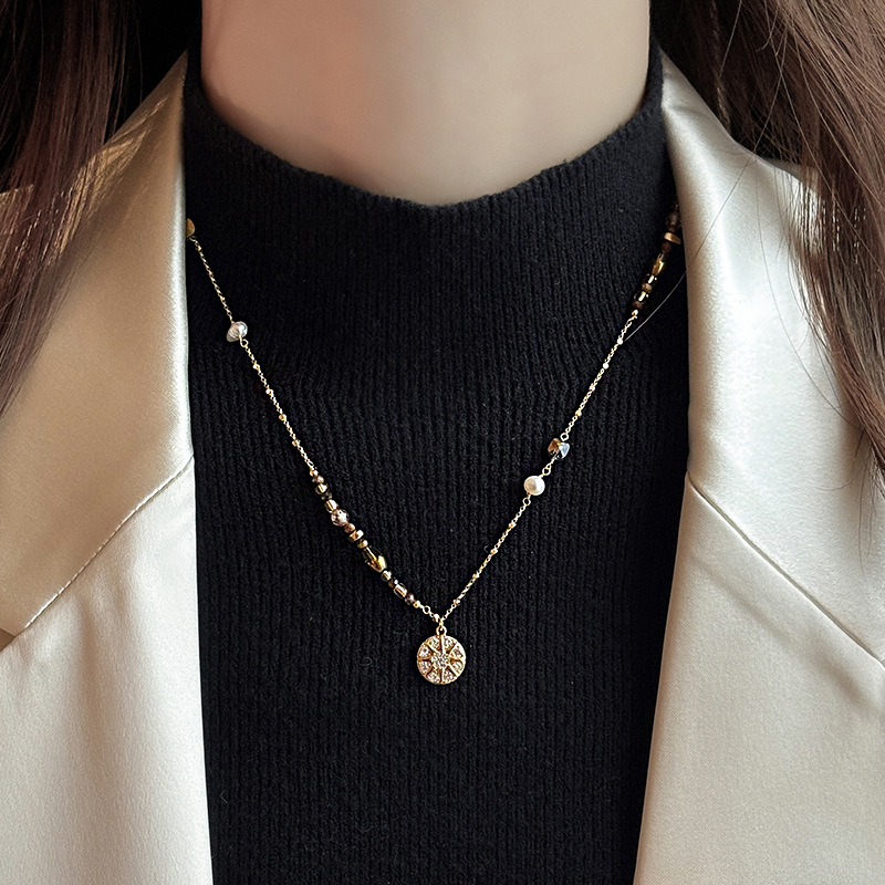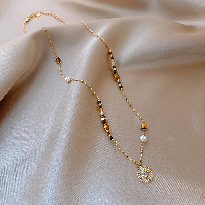 Color: Maillard micropaved star disc pearl necklace