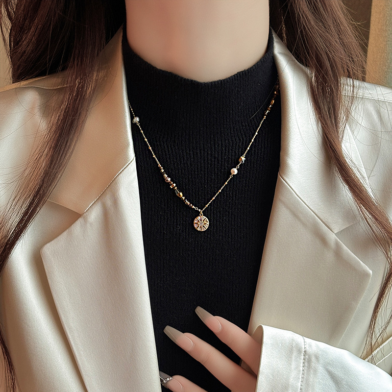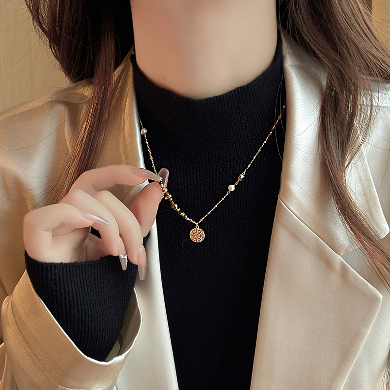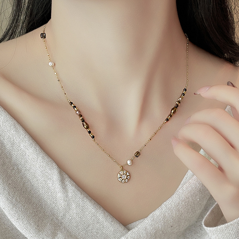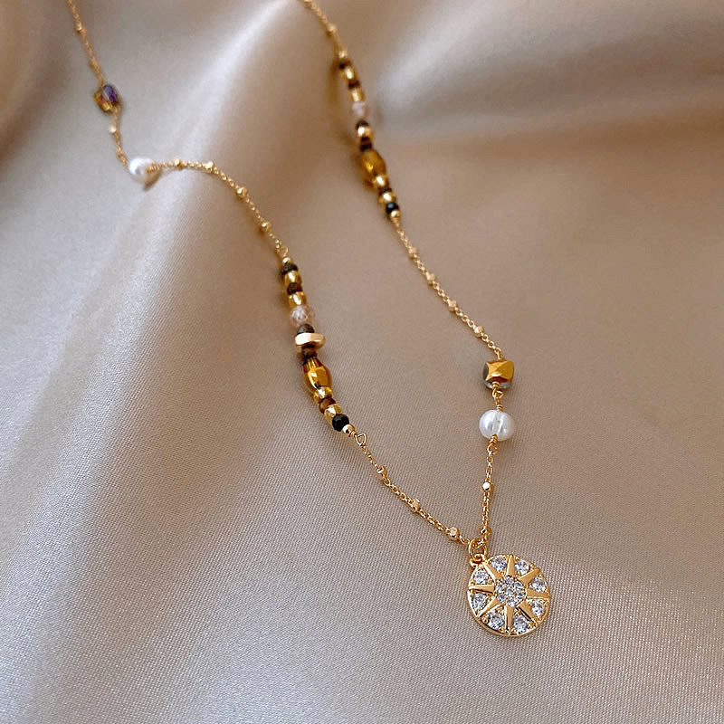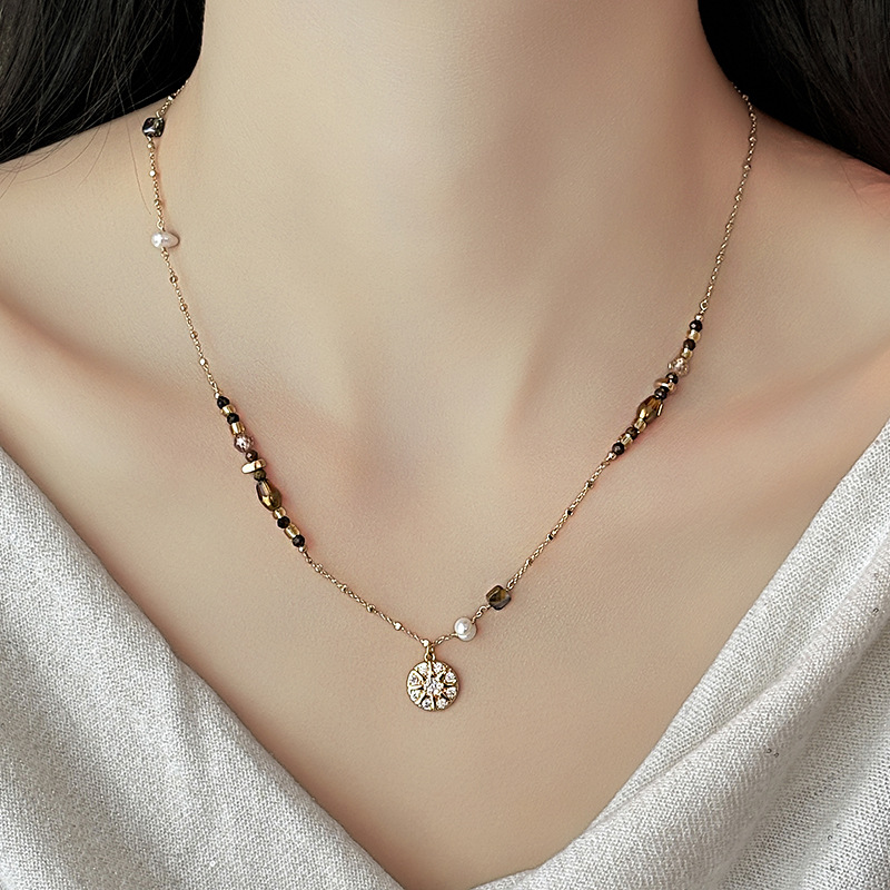 Color: Maillard micropaved star disc pearl necklace