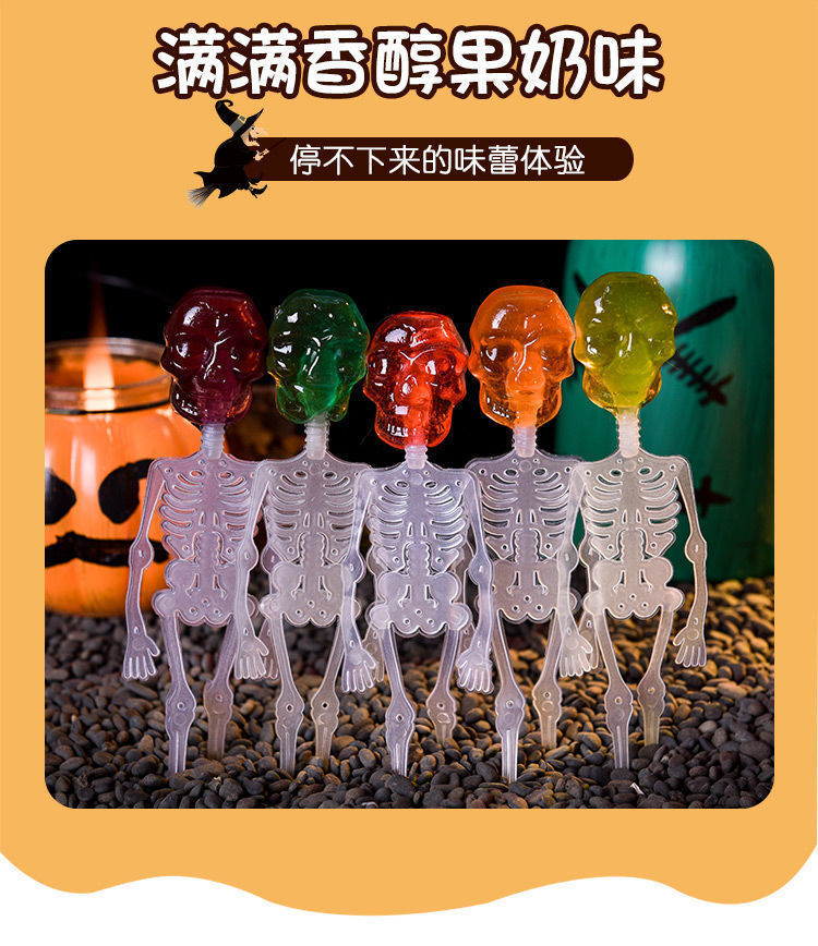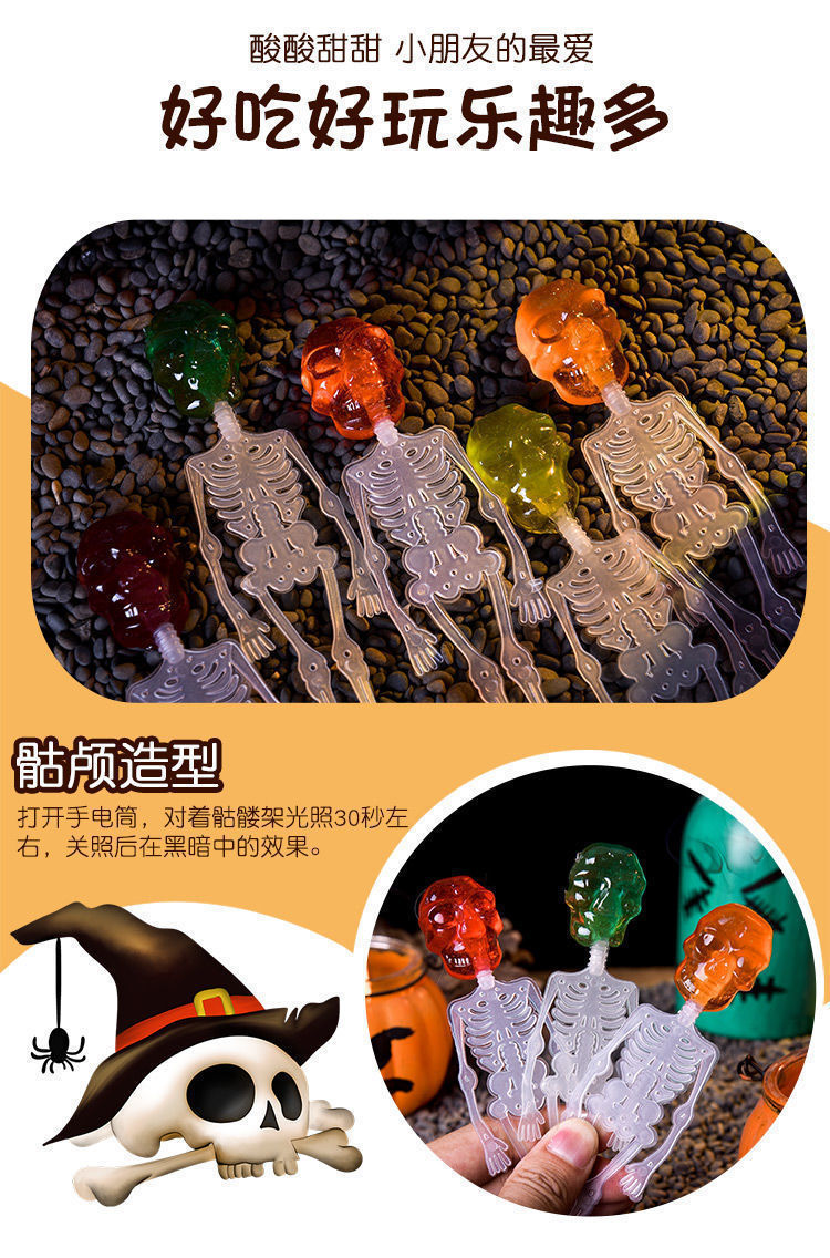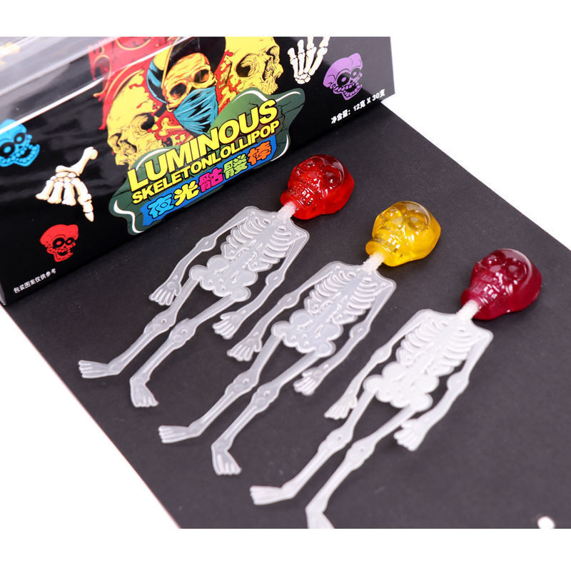 Net red skull luminous spoof candy creative trick wholesale Halloween lollipop fruit flavor hard candy other