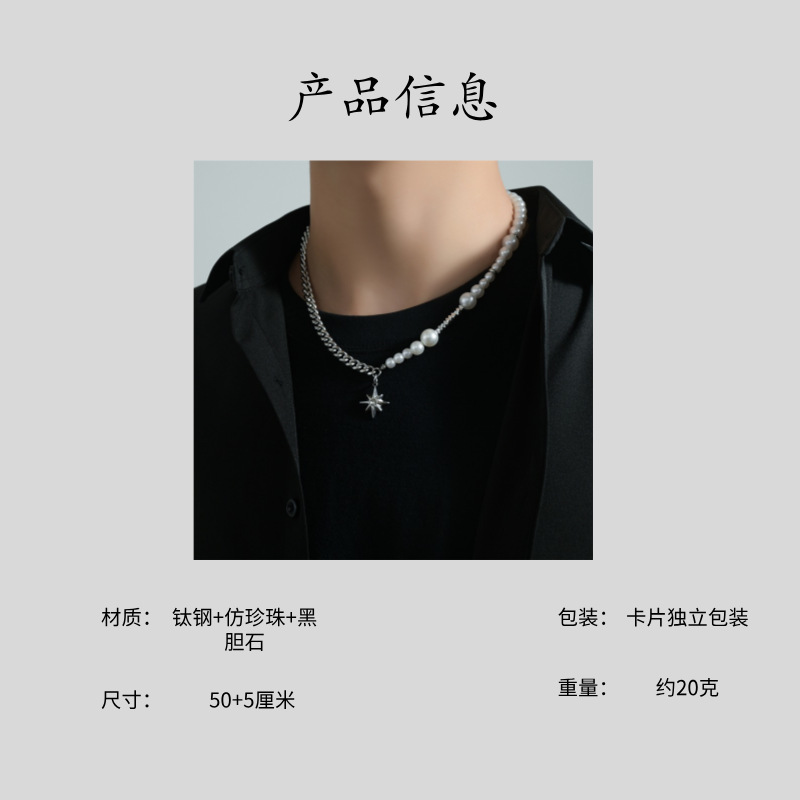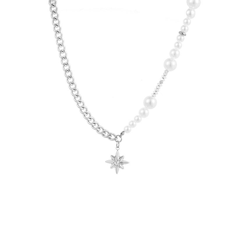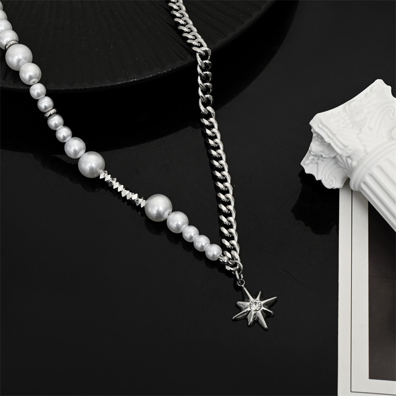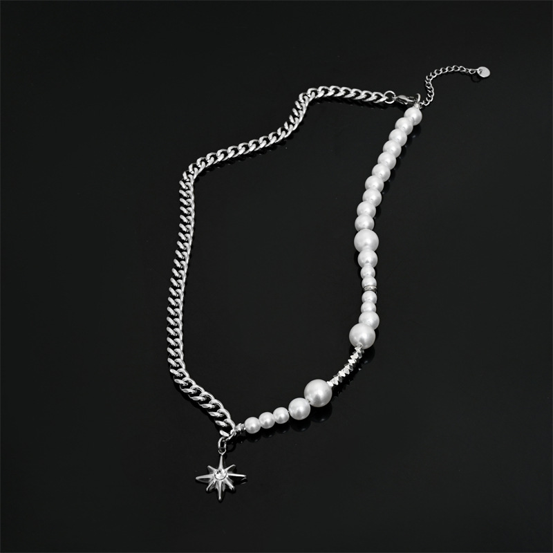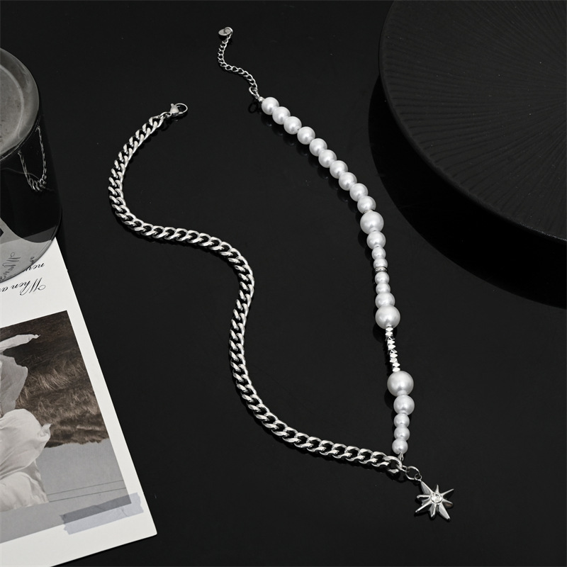European and American Cross-border Niche Design Pearl Star Titanium Steel Necklace Simple Style Fashion Popular Clavicle Chain for Men and Women
