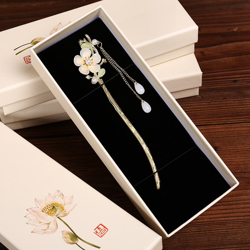 Lotus Car Pendant Packaging Chinese Style Head Comb Jewelry Box Retro Cover Lotus Hairpin Box in stock DIY