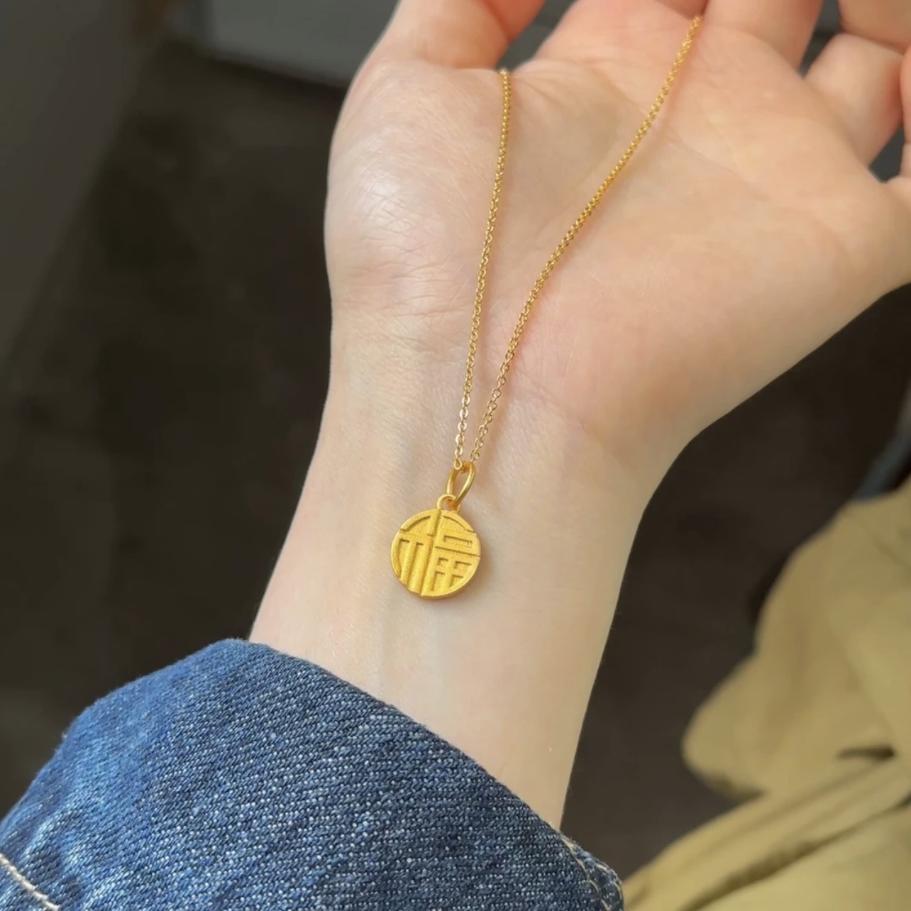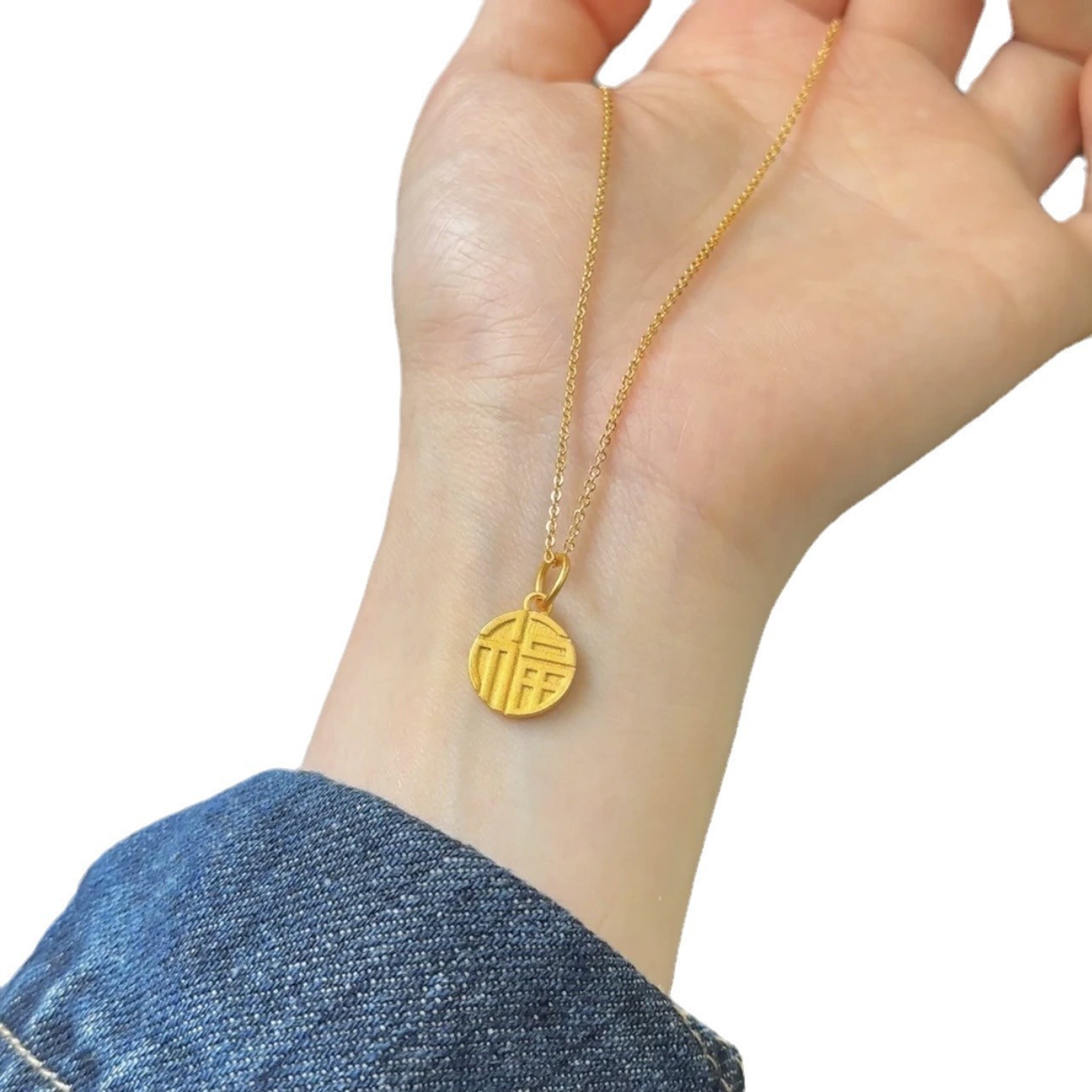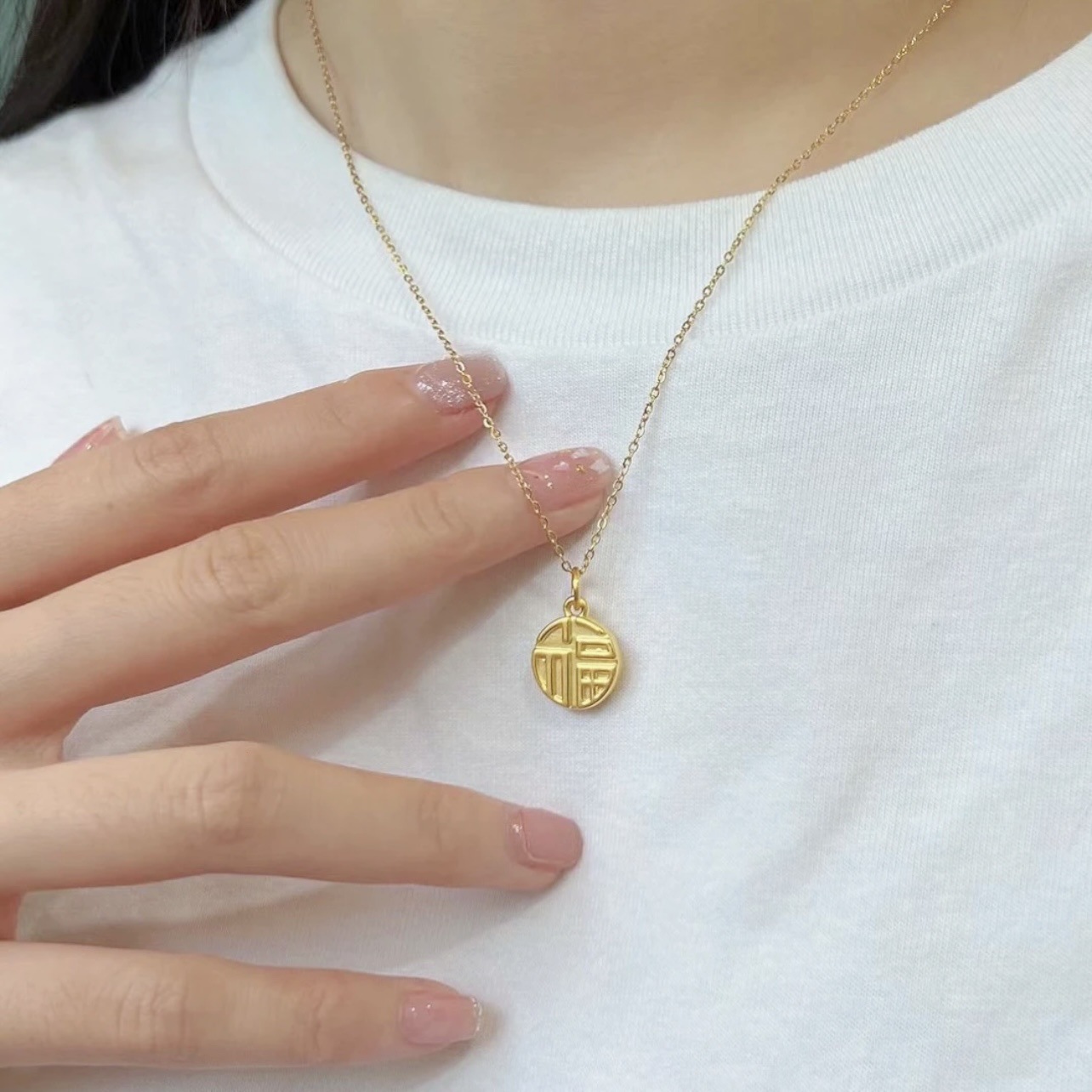 Real Gold Plated Strong Color-preserving Antique Sand Gold Copper All-match Fashion Light Luxury Elegant Simple Gold Double-sided Fortune Brand Necklace