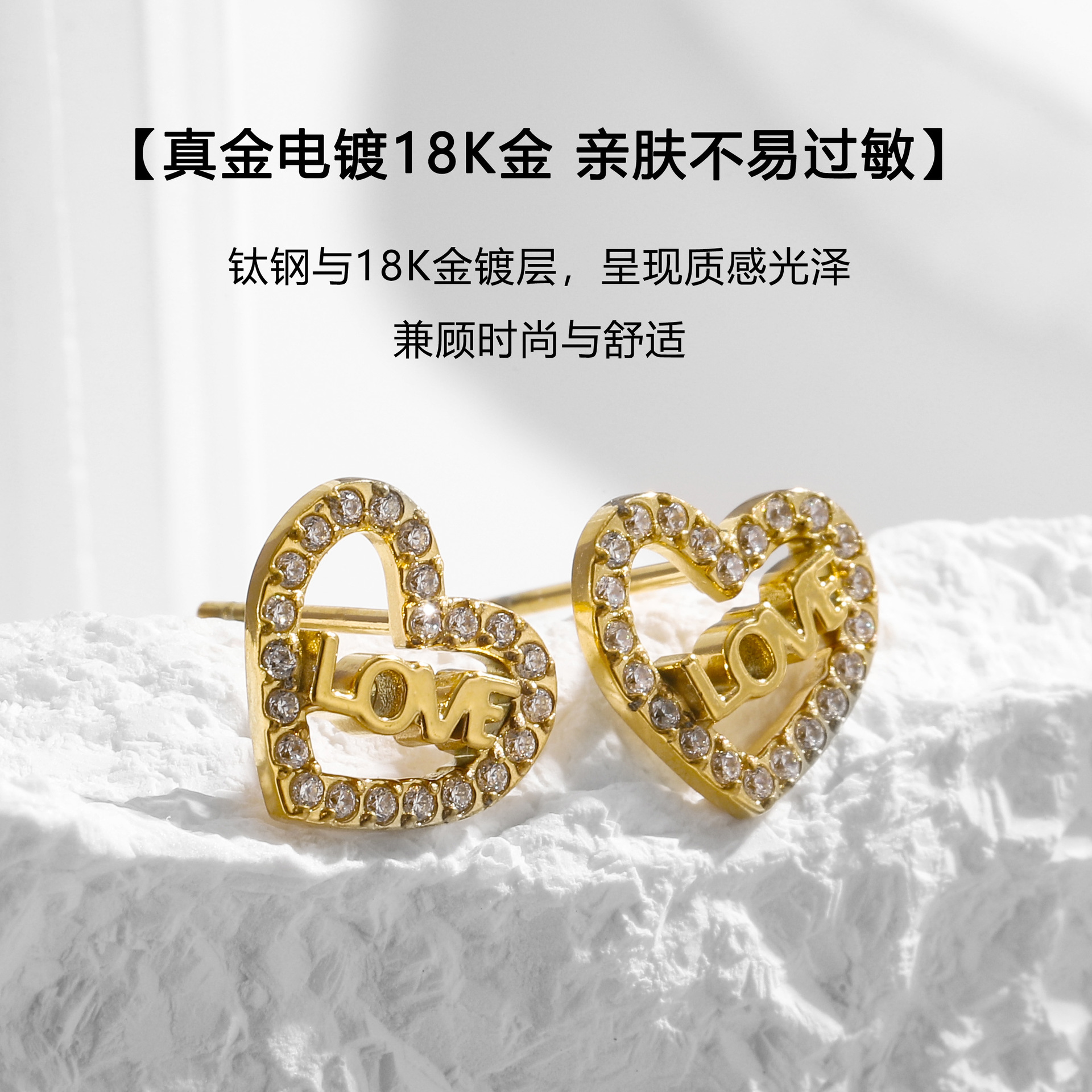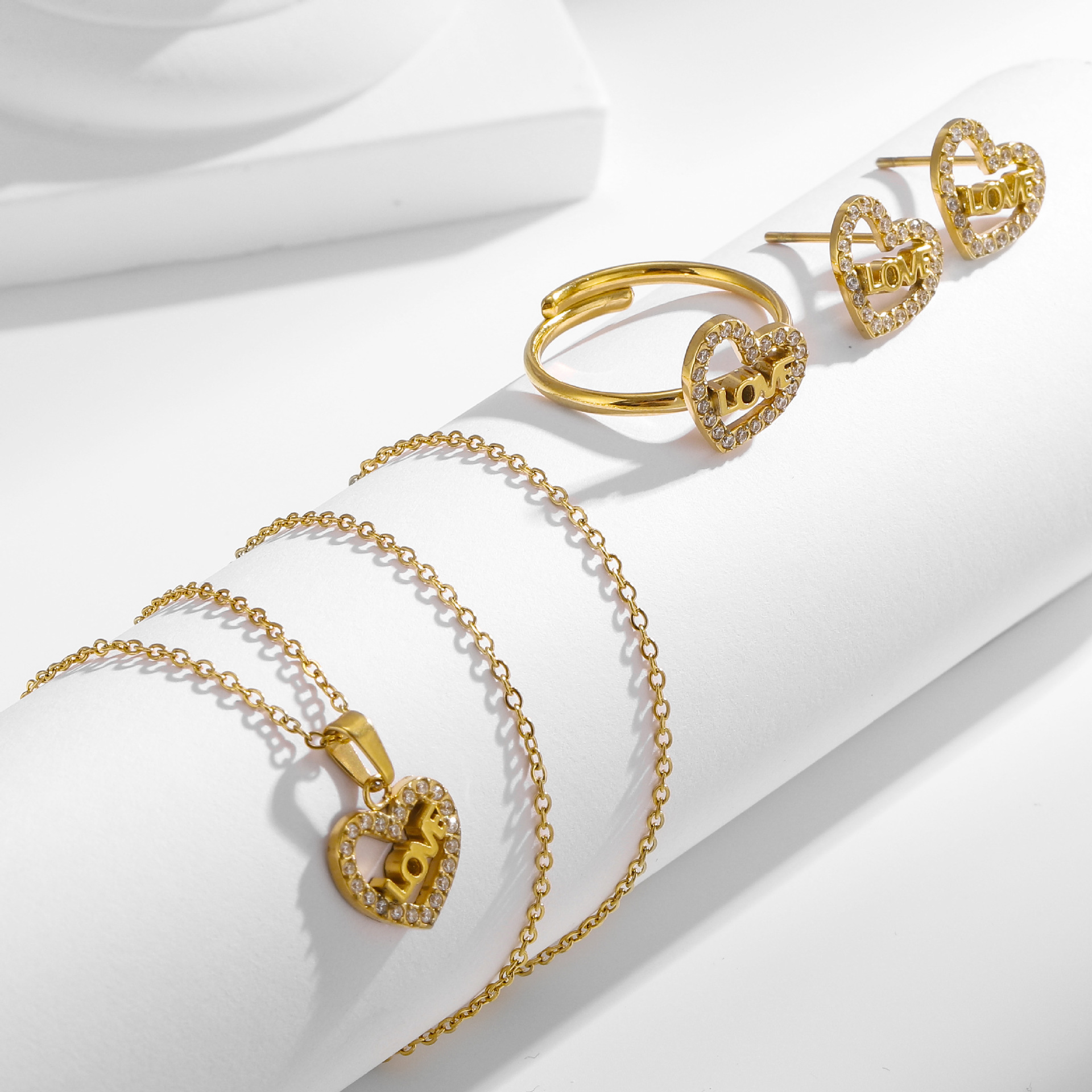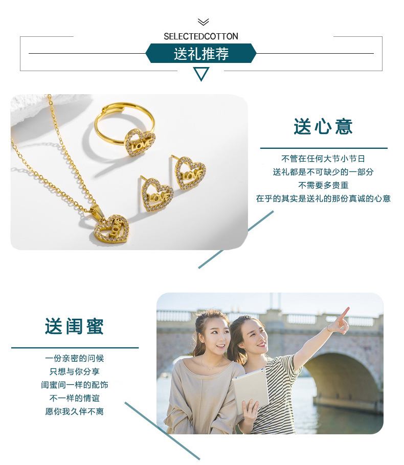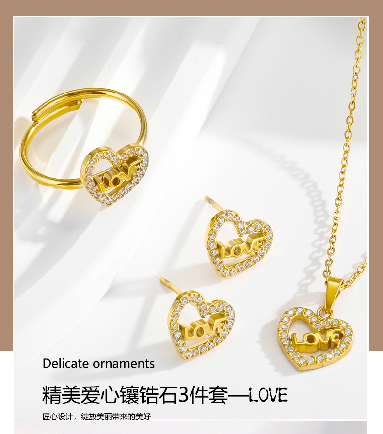 Titanium Steel Love Love Light Luxury Elegant Gorgeous Diamond Necklace Women's All-match Clavicle Chain Stainless Steel Jewelry suit
