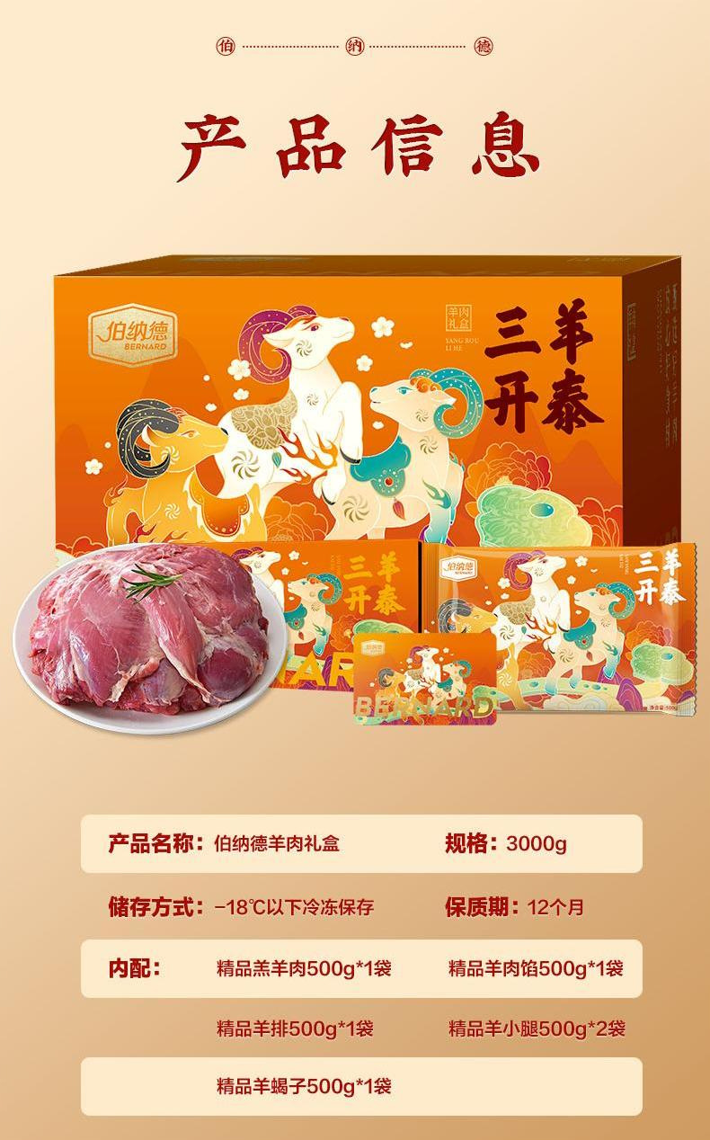 Bernard's Premium Lamb Gift Box, Lamb Stick Bone, Lamb Scorpion, Lamb Leg Meat Combination, Fresh Gift Package, Holiday Gift
