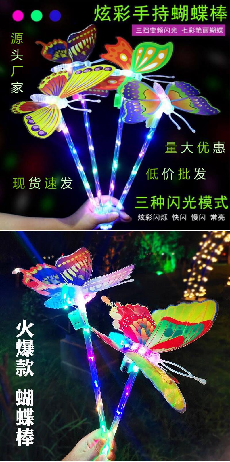 Color: Colorful handheld luminous butterfly stick (installed, free battery, three gears, randomly distributed)