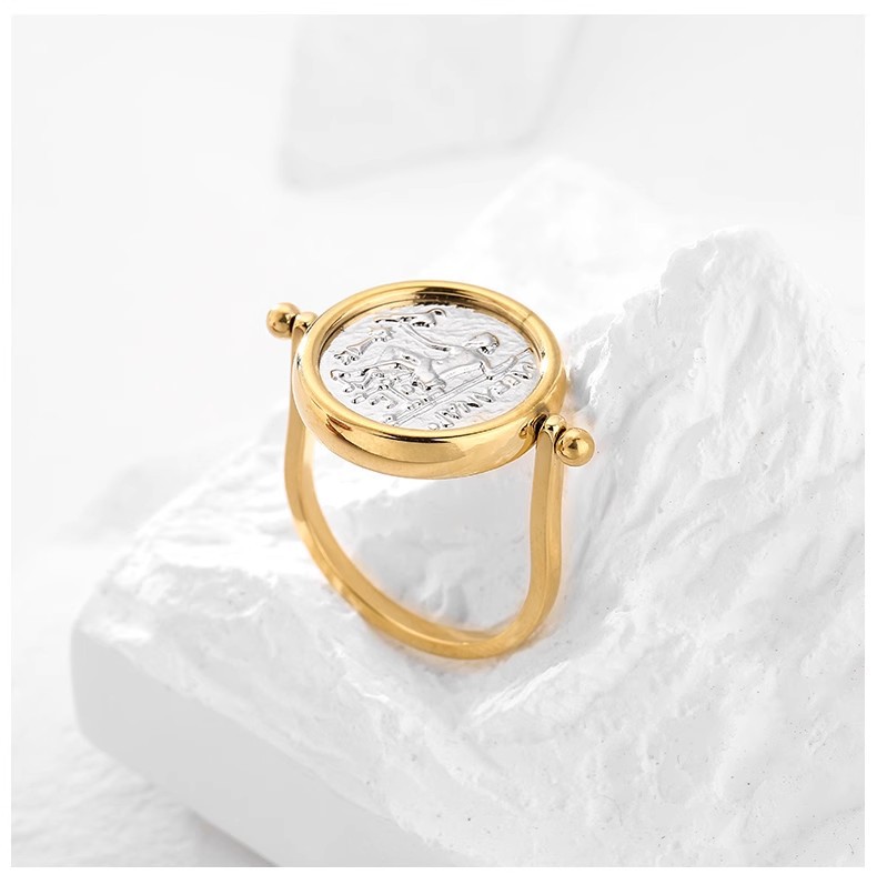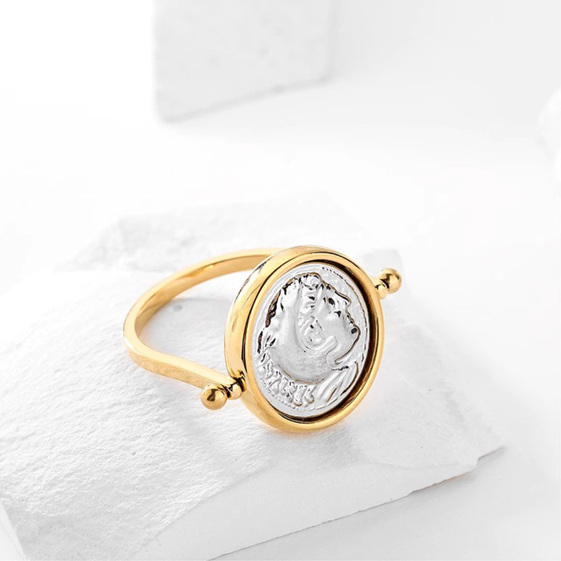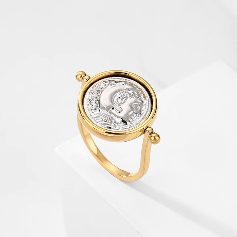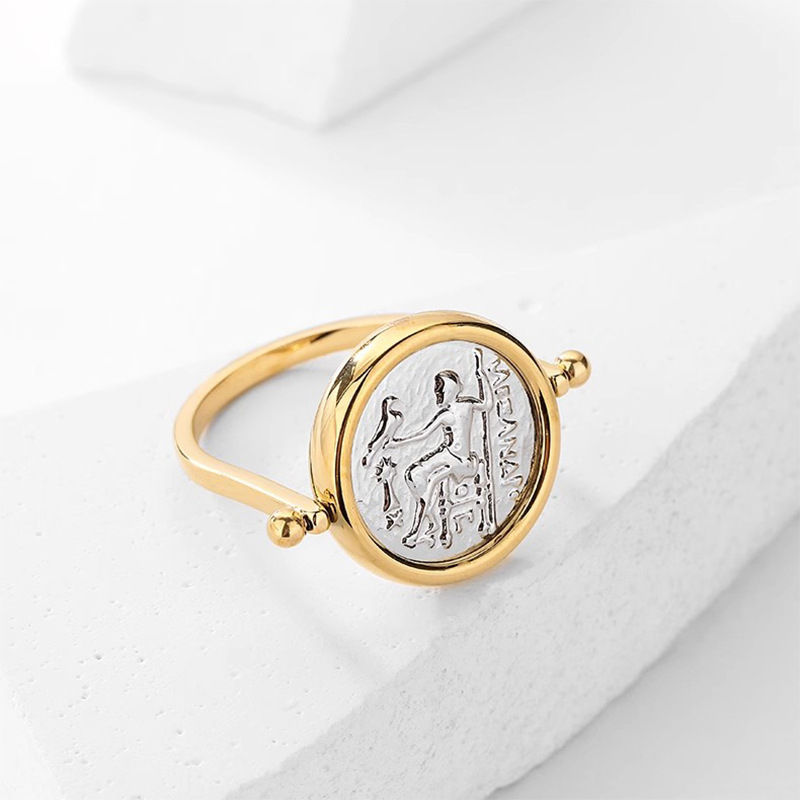 Alexander Stainless Steel Cast Double Sided Round Brand Ring Gold Plated Greek Mythology Vintage Personality Cross Border Ring