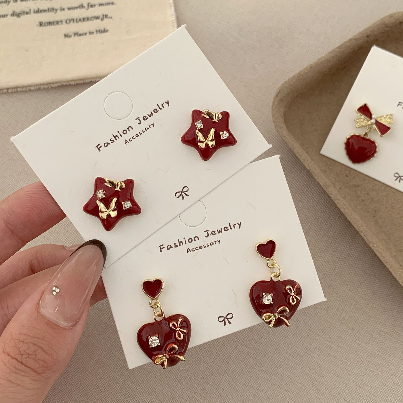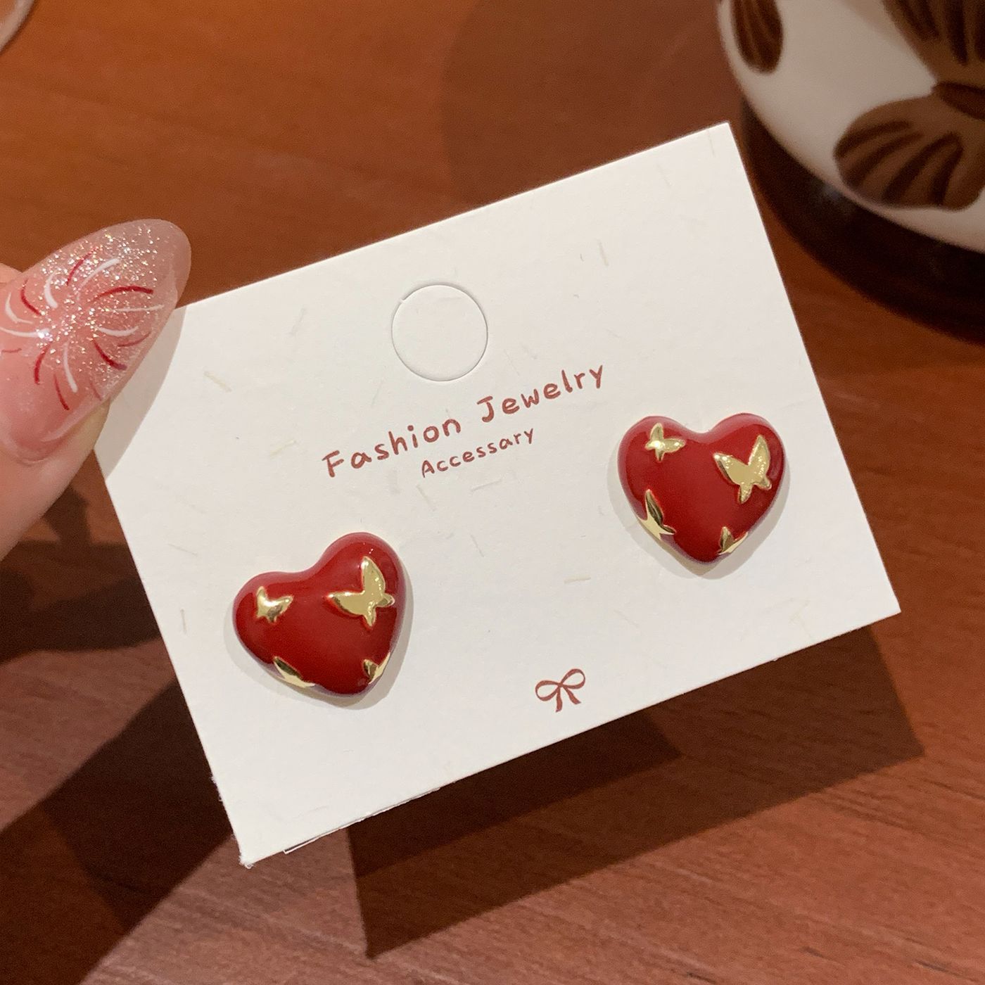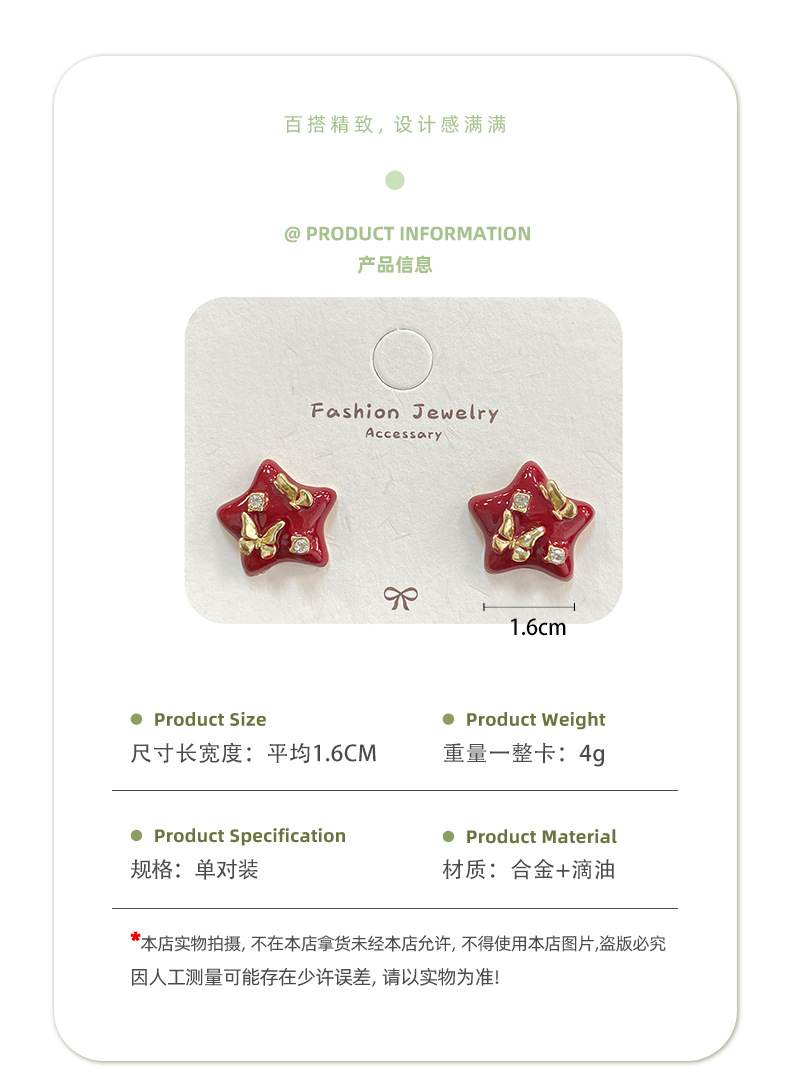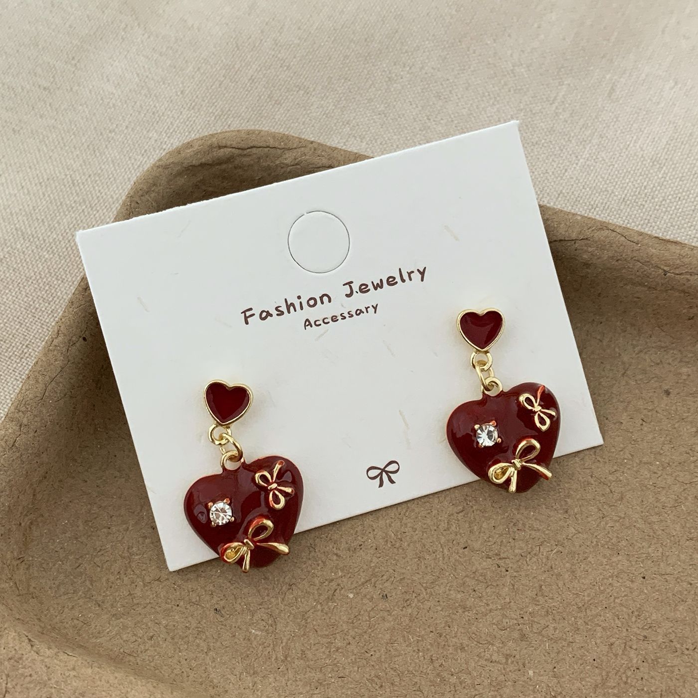Autumn and Winter Ancora Red Heart-Shaped Earrings with Diamonds and Enamel, Silver Needle, Niche Exquisite Design, Festive Earrings for Women