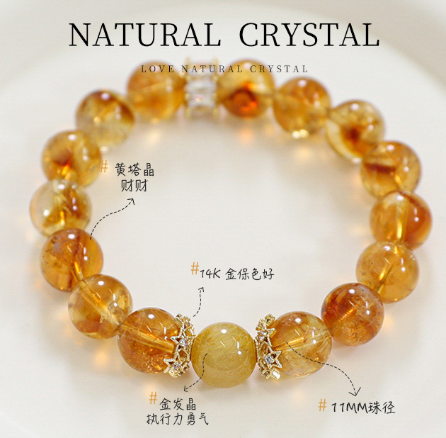 Natural yellow crystal crystal bracelet fortune transfer prosperous career golden crystal girl bracelet jewelry gift wholesale