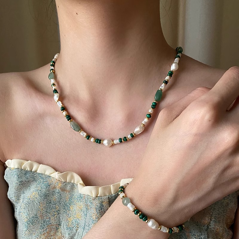 Color: Green East Tomb Agate Freshwater Pearl Necklace