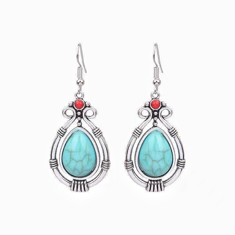 Cross-border Hot Sale Bohemian Vintage Earrings Leaf Drop Shape Handmade Rice Bead Woven Tassel Turquoise Earrings