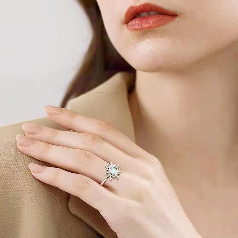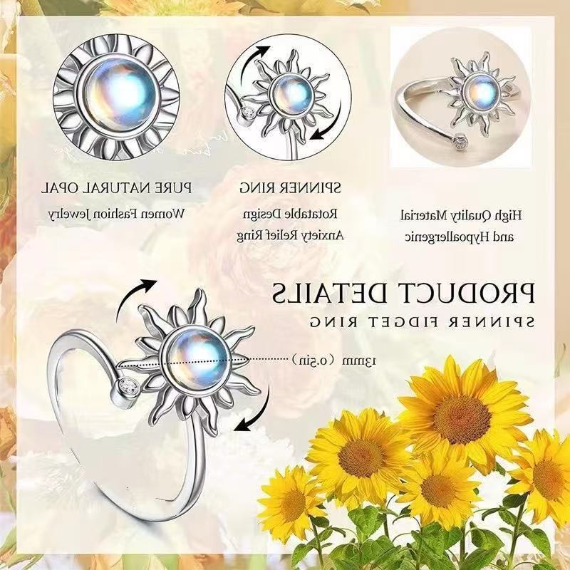 Rotatable sunflower moonstone ring women's simple versatile creative adjustable ring fashion jewelry wholesale
