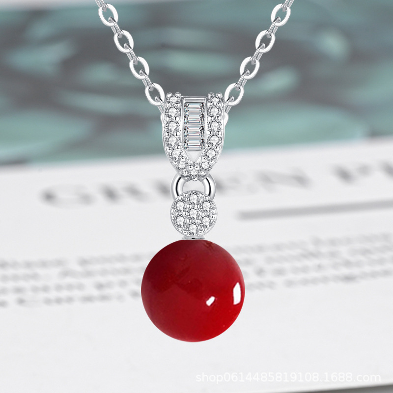 Color: X25 [14MM red beaded pendant/without chain] silver