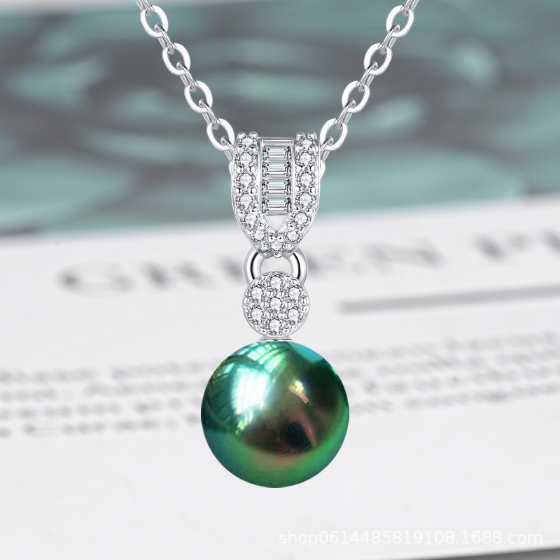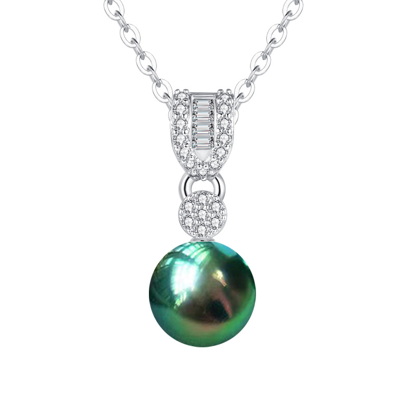 Color: X25 [14MM Peacock Green Bead Pendant/Without Chain] silver