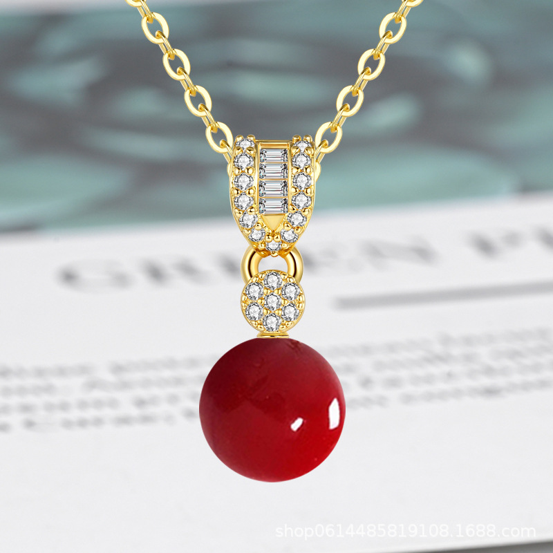 Color: X25 [14MM Red Bead Pendant/Without Chain] Gold