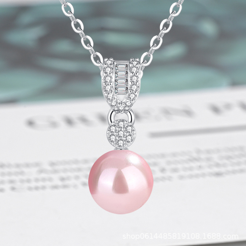 Color: X25 [14MM pink beaded pendant/without chain] silver