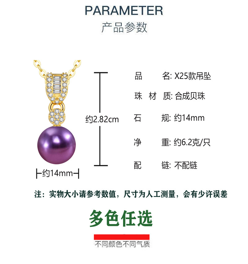 Color: X25 [14MM purple beaded pendant/without chain] gold