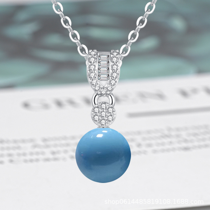 Color: X25 [14MM Sky Blue Bead Pendant/Without Chain] silver