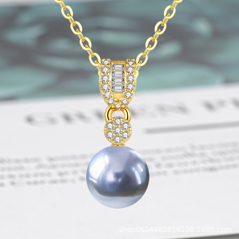 Color: X25 [14MM dark gray Bead Pendant/Without Chain] Gold