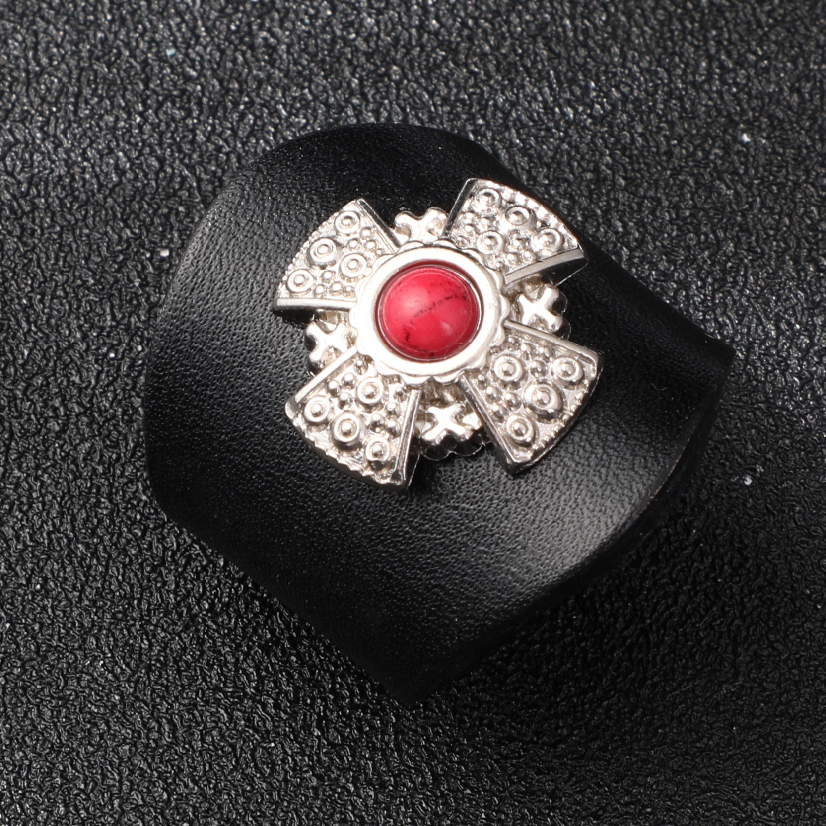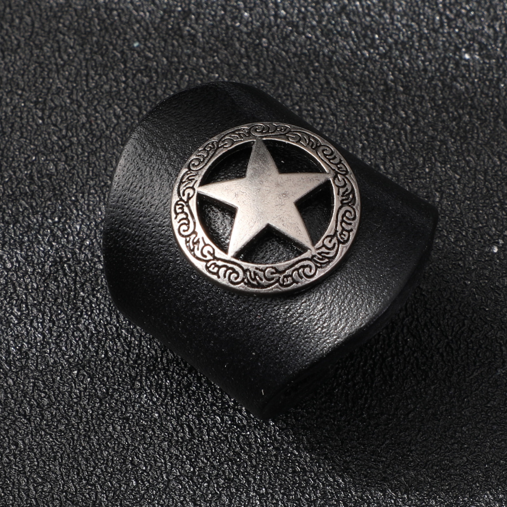 Color: Black ring-five-pointed star silver buckle