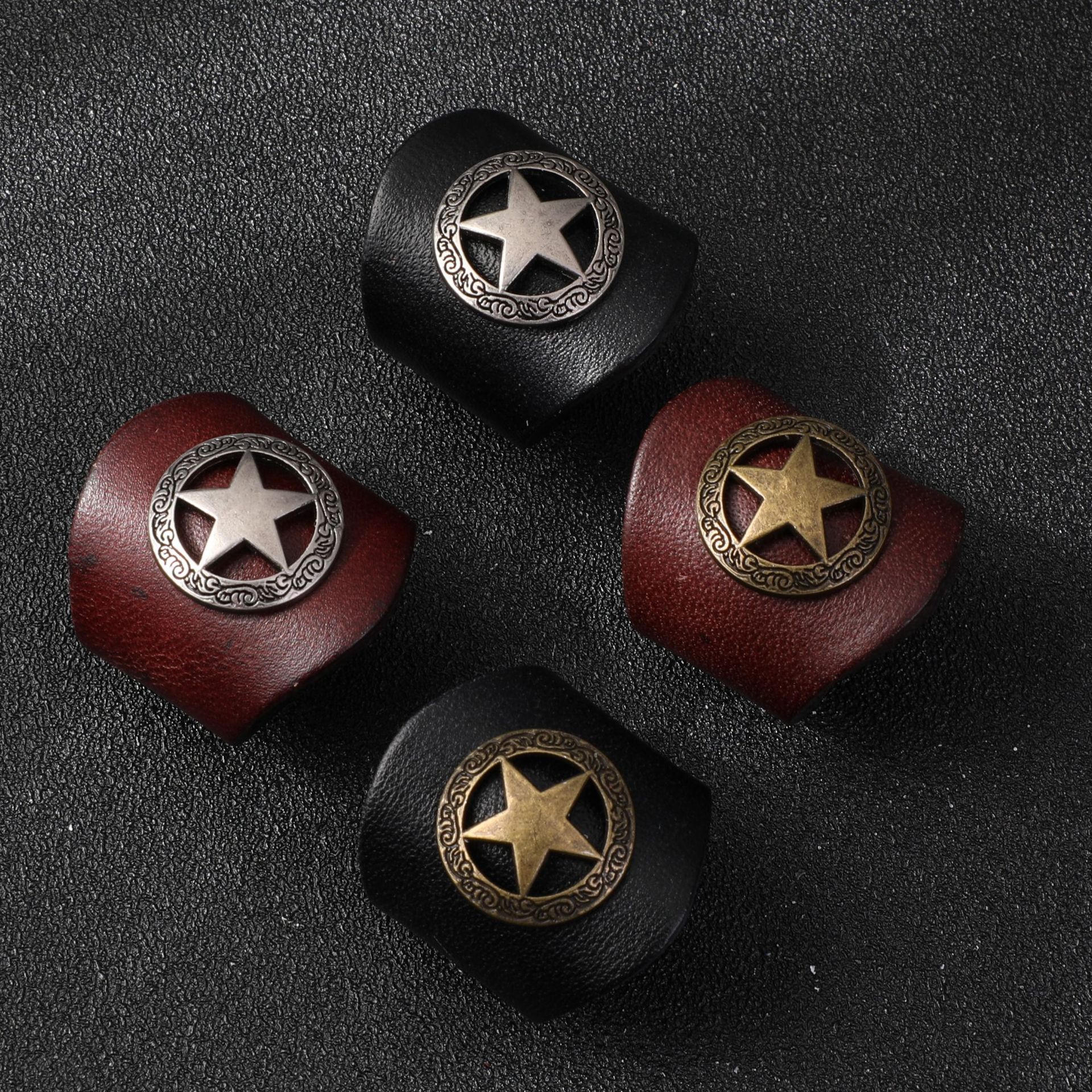 Color: Brown ring-five-pointed star silver buckle