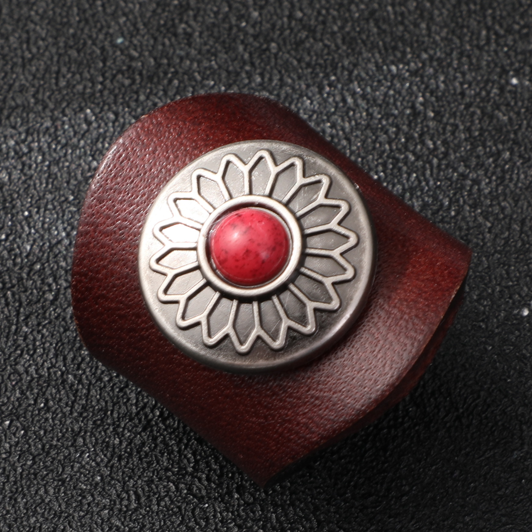 Brown ring-five-pointed star silver buckle