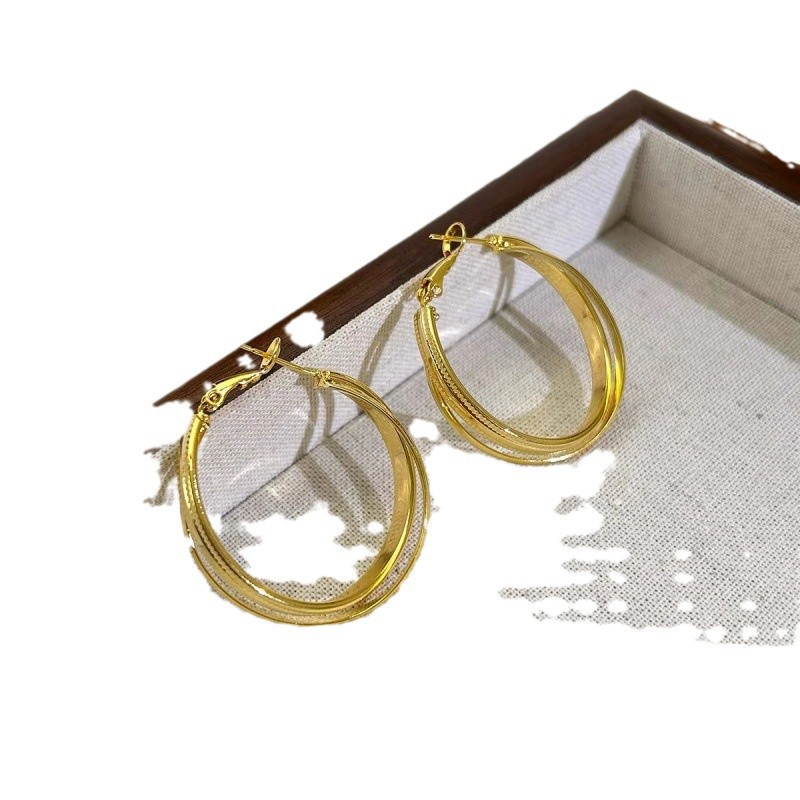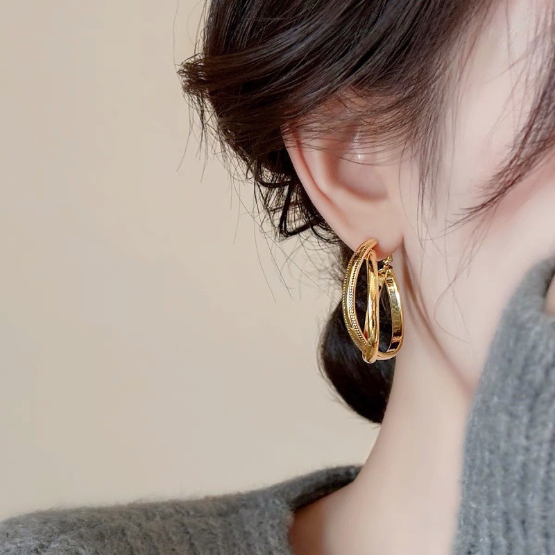 French Golden Large Hoop Earrings Women's Niche Design Earrings 2024 New Explosions Unique All-match Fashionable Earrings