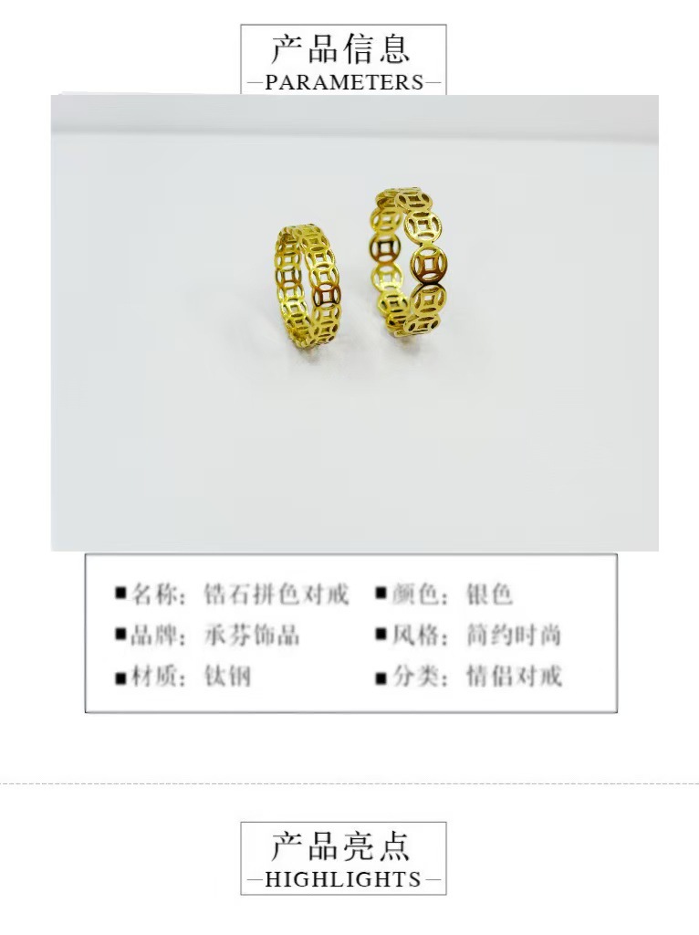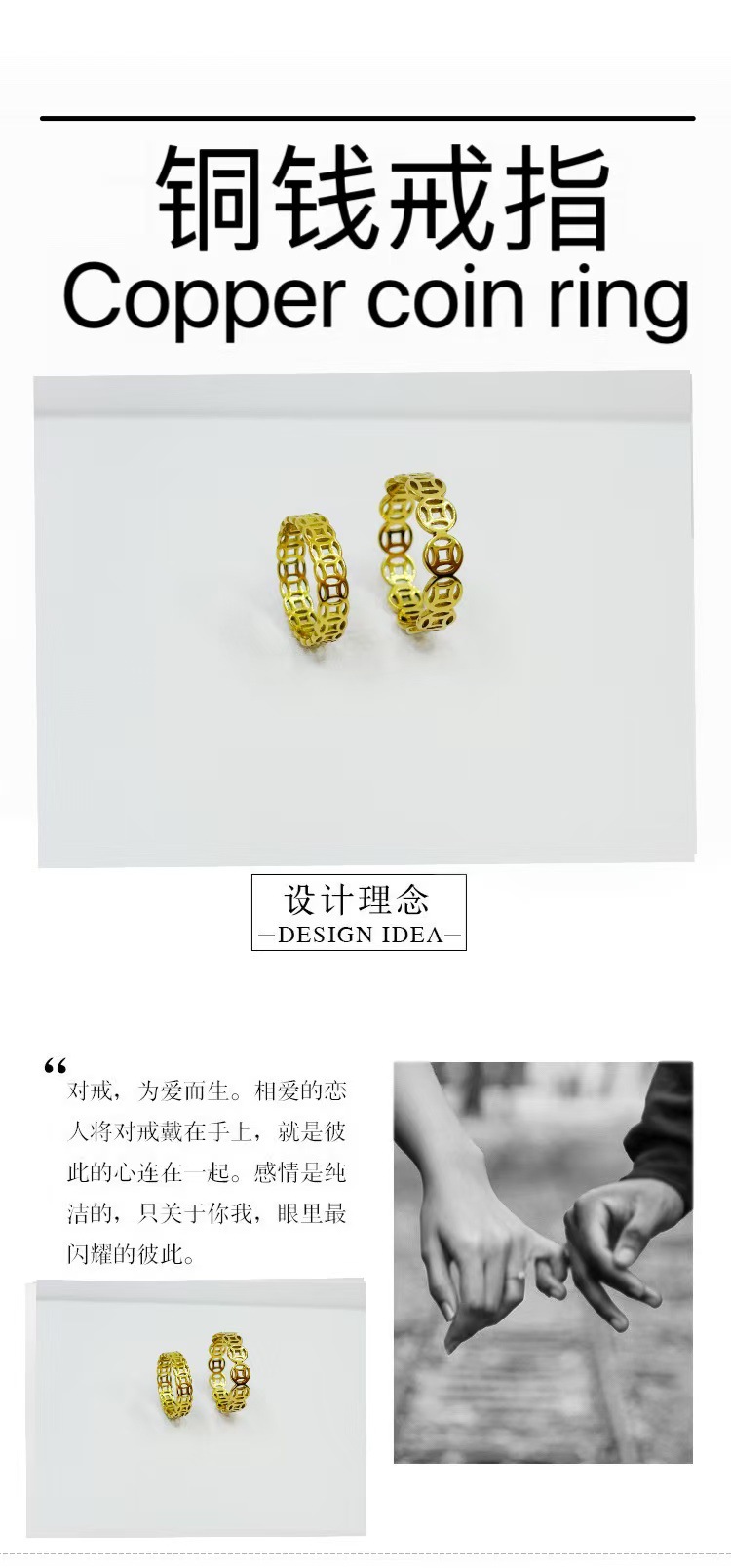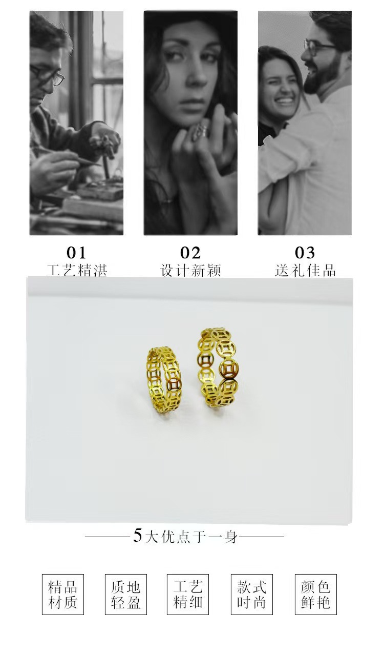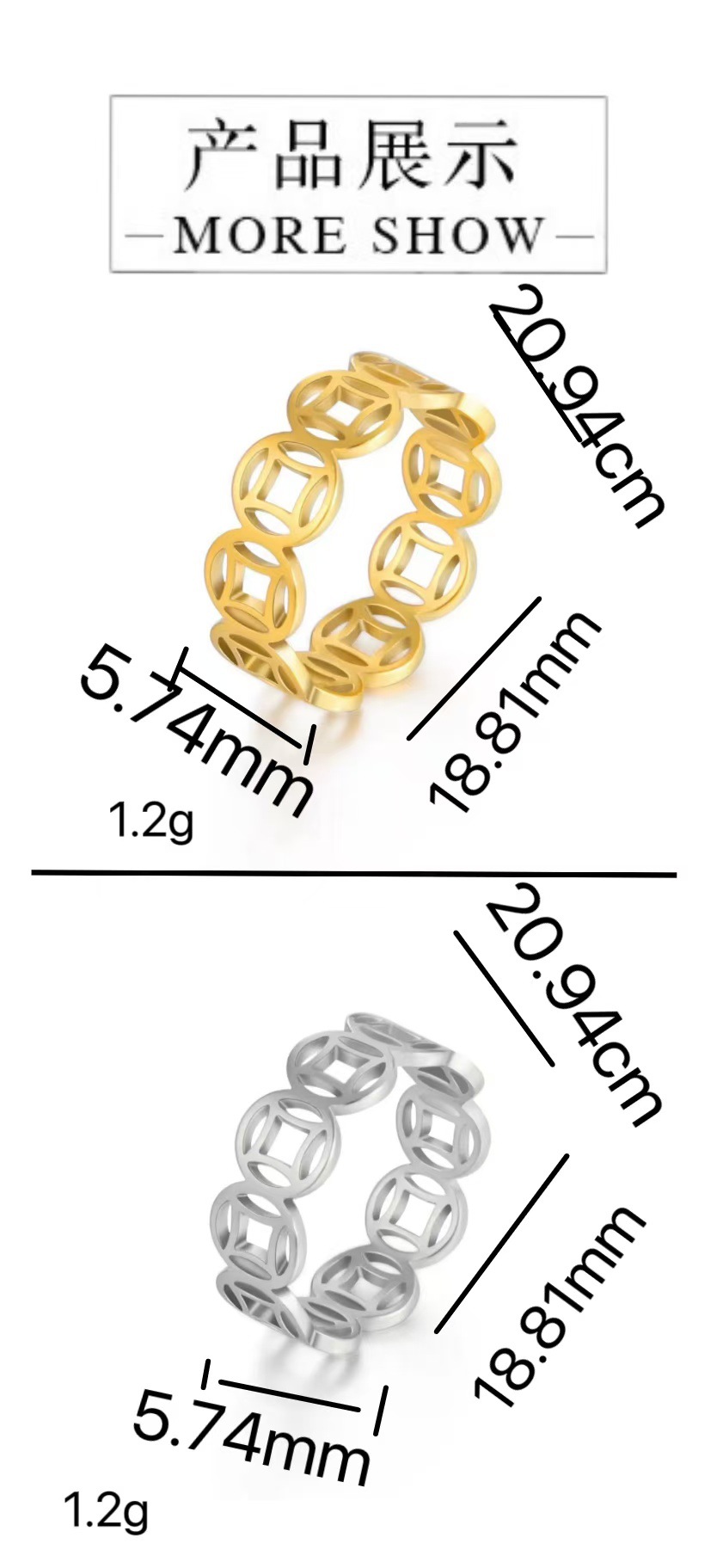 Cross-border titanium steel jewelry hollow lucky copper money transfer index finger titanium steel ring geometric personality retro lovers ring