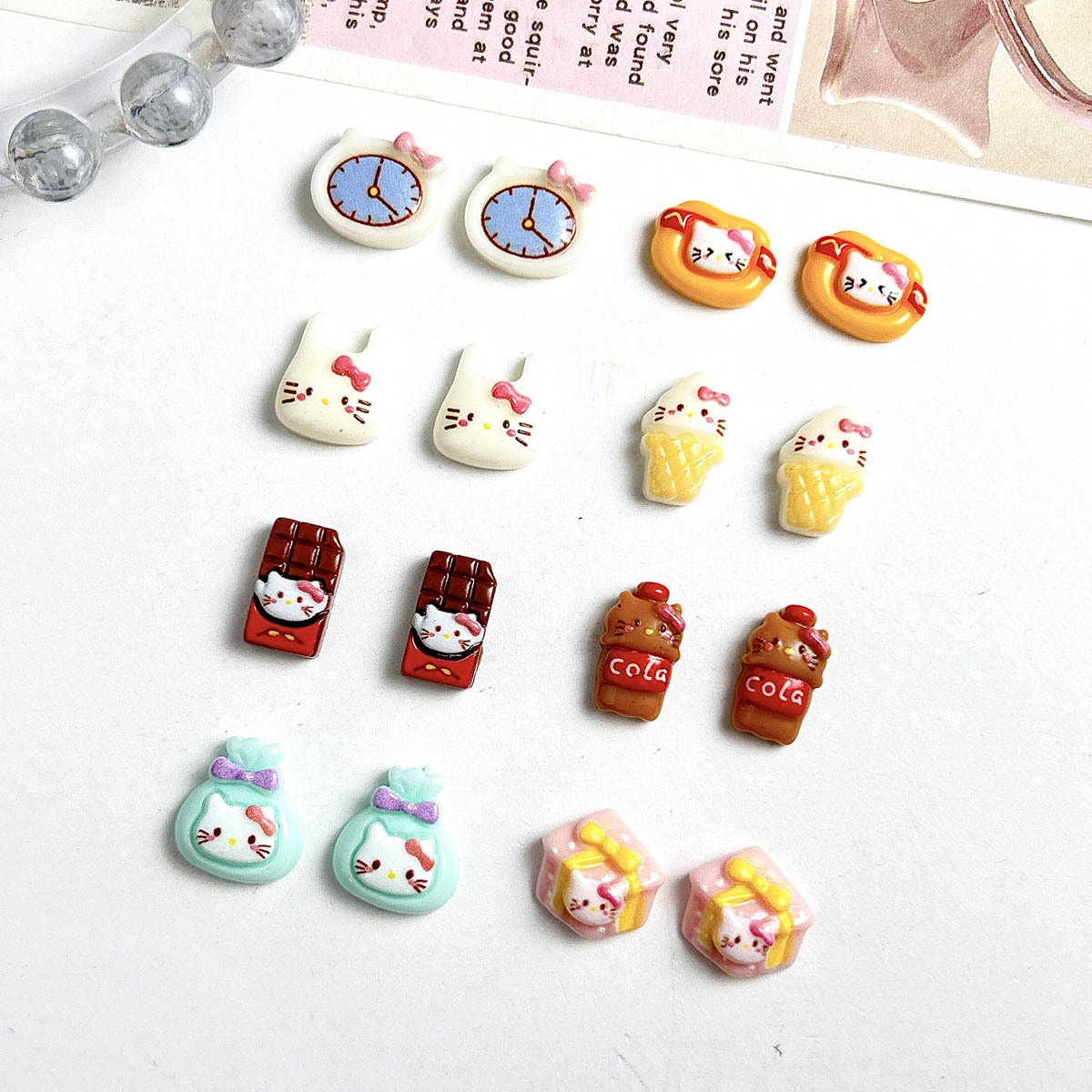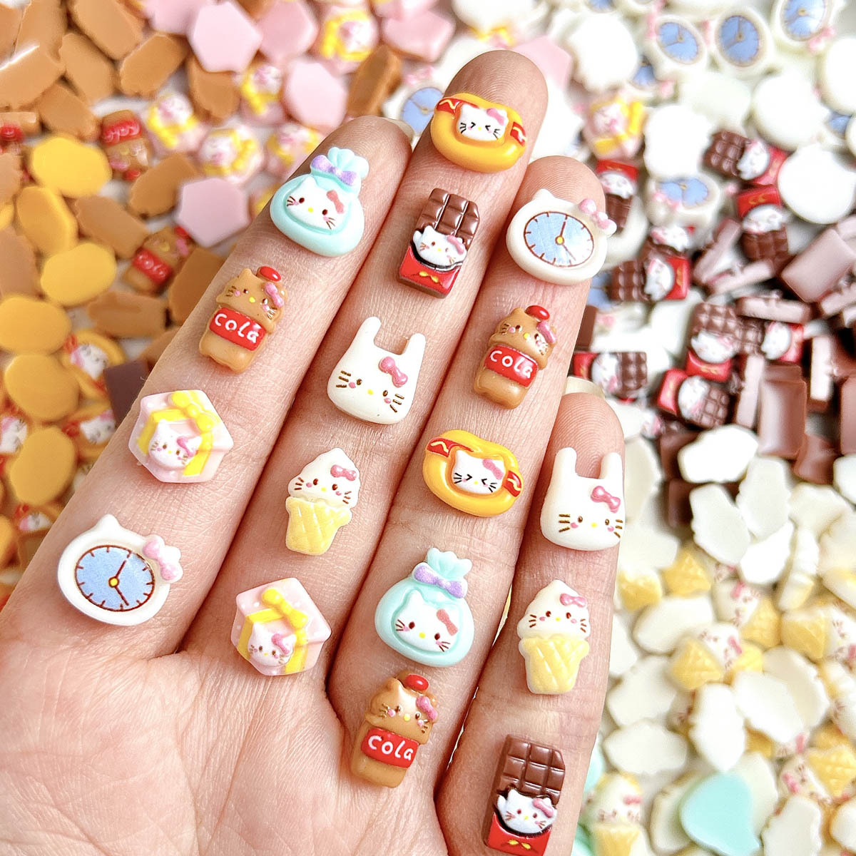 Diy Food Play Cartoon KT Cat Nail Art Accessories Cute Three-Dimensional Hello Kitty Ice Cream Chocolate Wear Armor Accessories