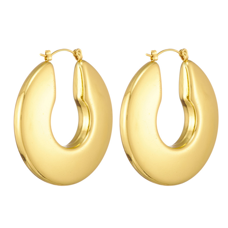 French Retro Simple C- shaped Circle Earrings Light Luxury Cold Style Earrings Niche Design Sense Titanium Steel High-grade Earrings