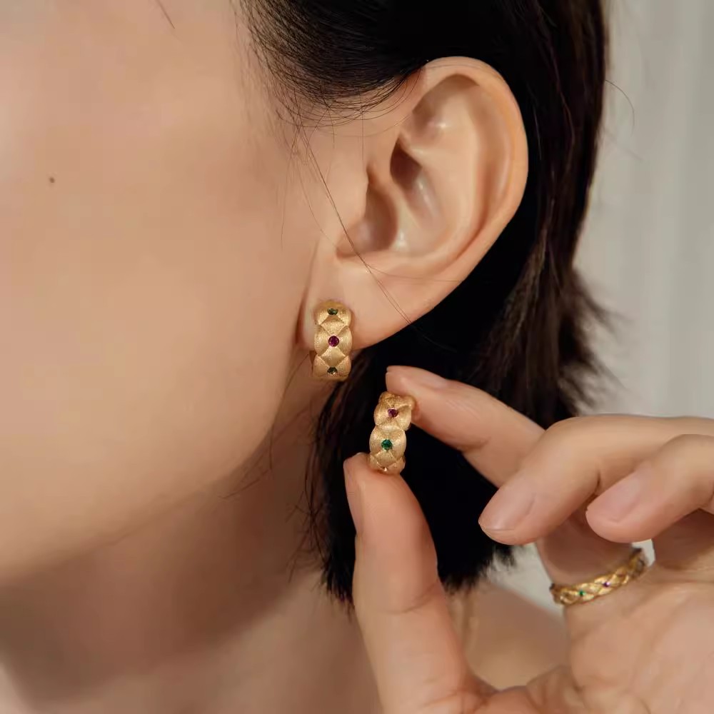 French Retro Fashionable Color Treasure Brushed Diamond Ring Light Luxury Old Money Style Pendant Necklace Twist Earrings