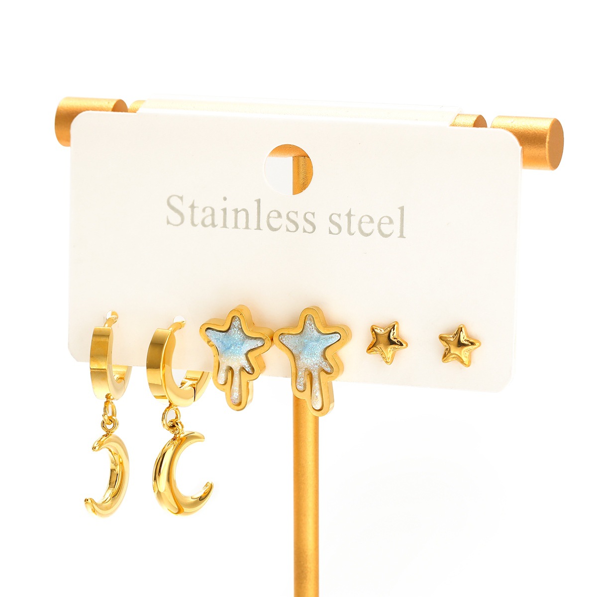 Color: 11mm gold earrings 1 pair hanging moon + 2 pairs of five-pointed star earrings
