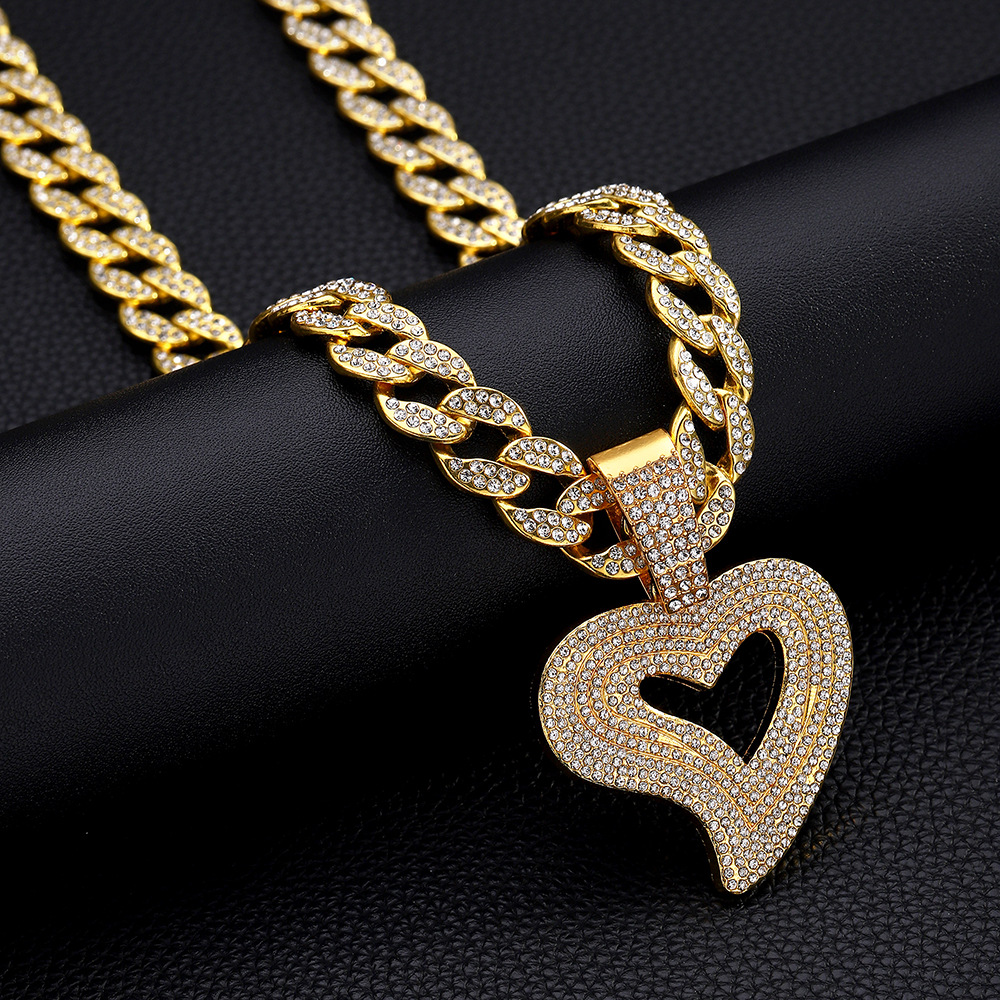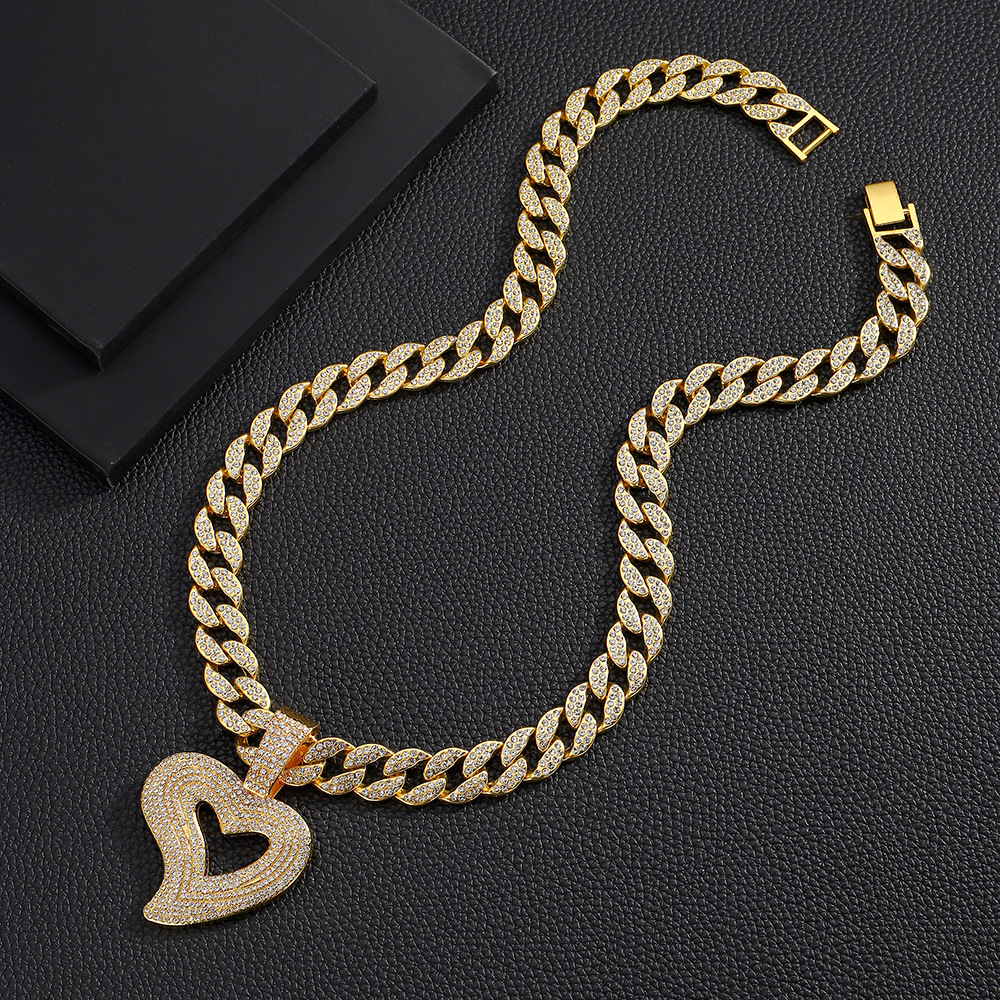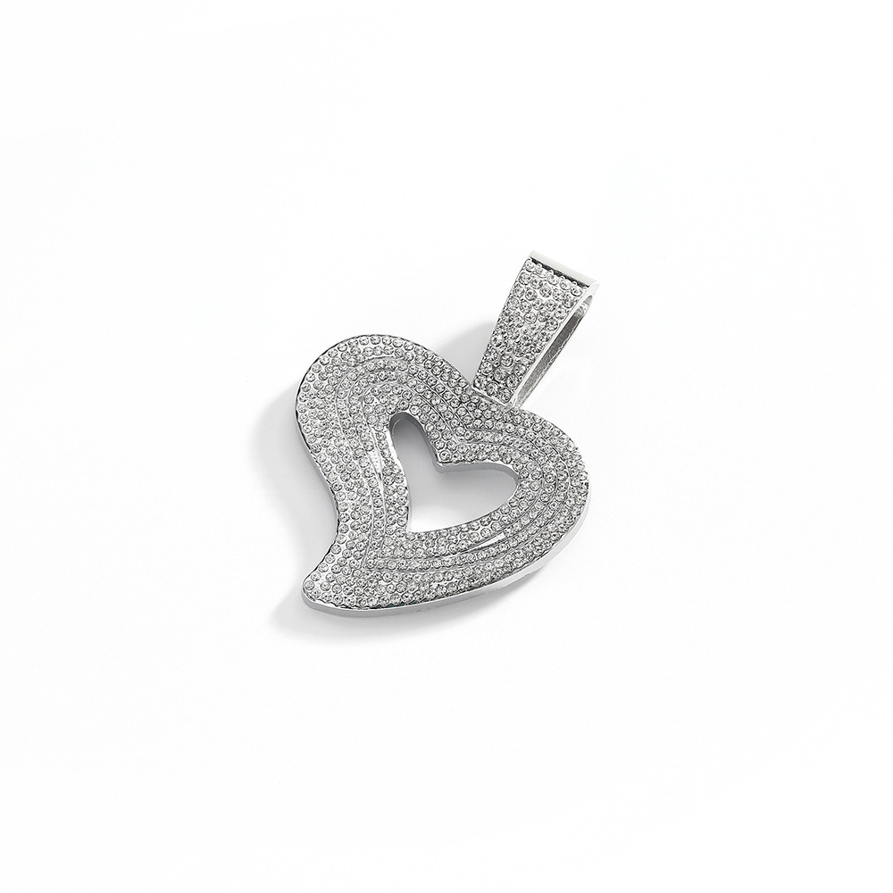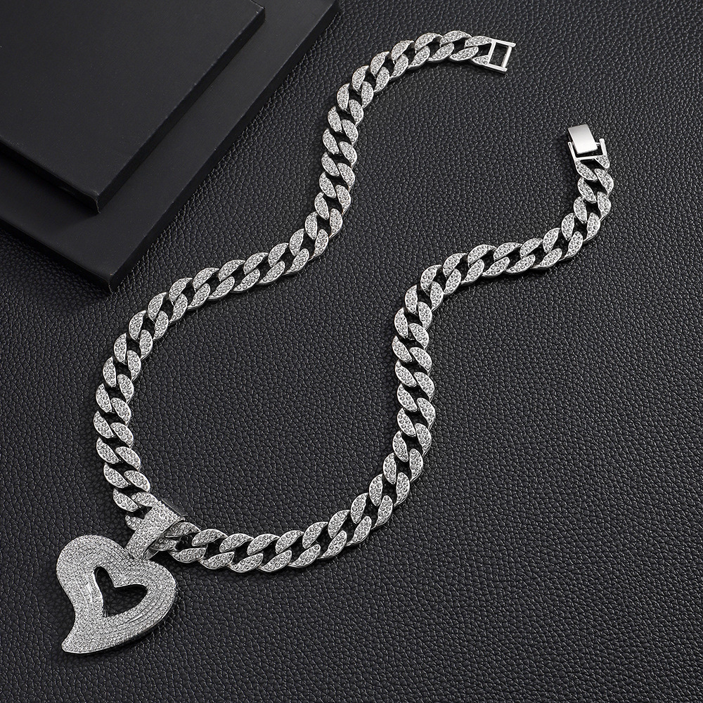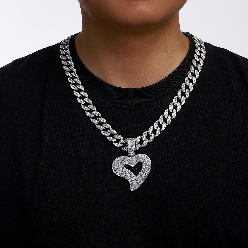 European and American Men and Women New Big Heart Pendant Alloy Necklace Hip-Hop Stylish Fashion Rap Diamond Pendant Customization