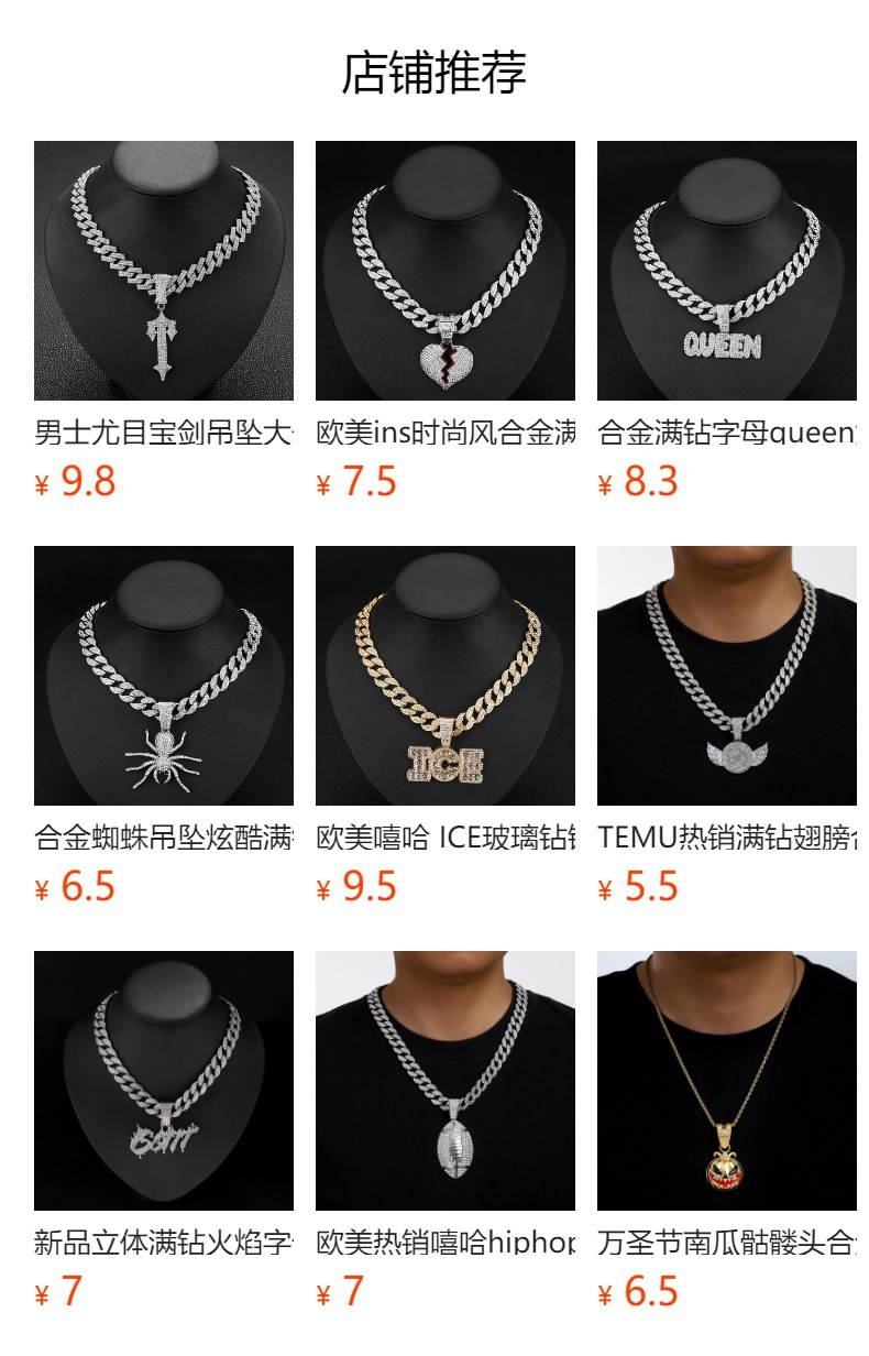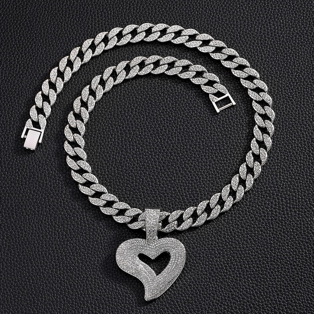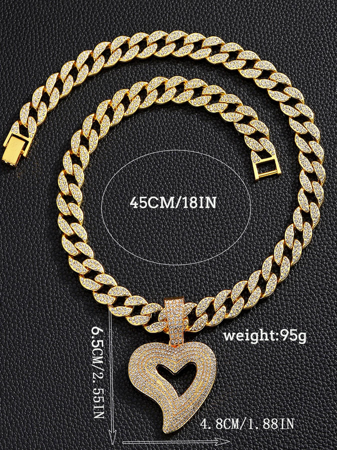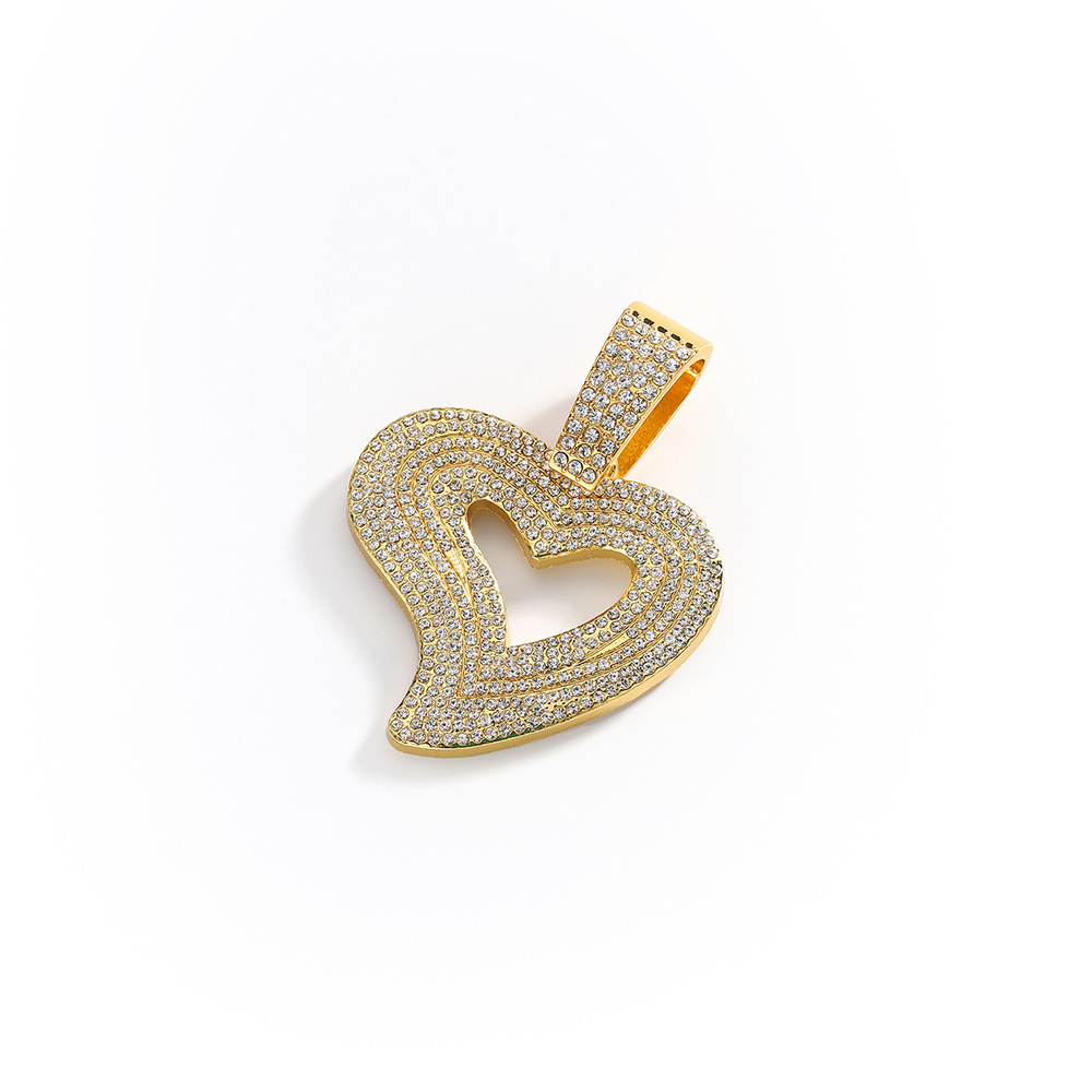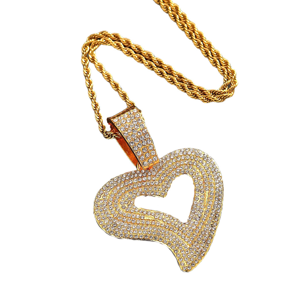 European and American Men and Women New Big Heart Pendant Alloy Necklace Hip-Hop Stylish Fashion Rap Diamond Pendant Customization