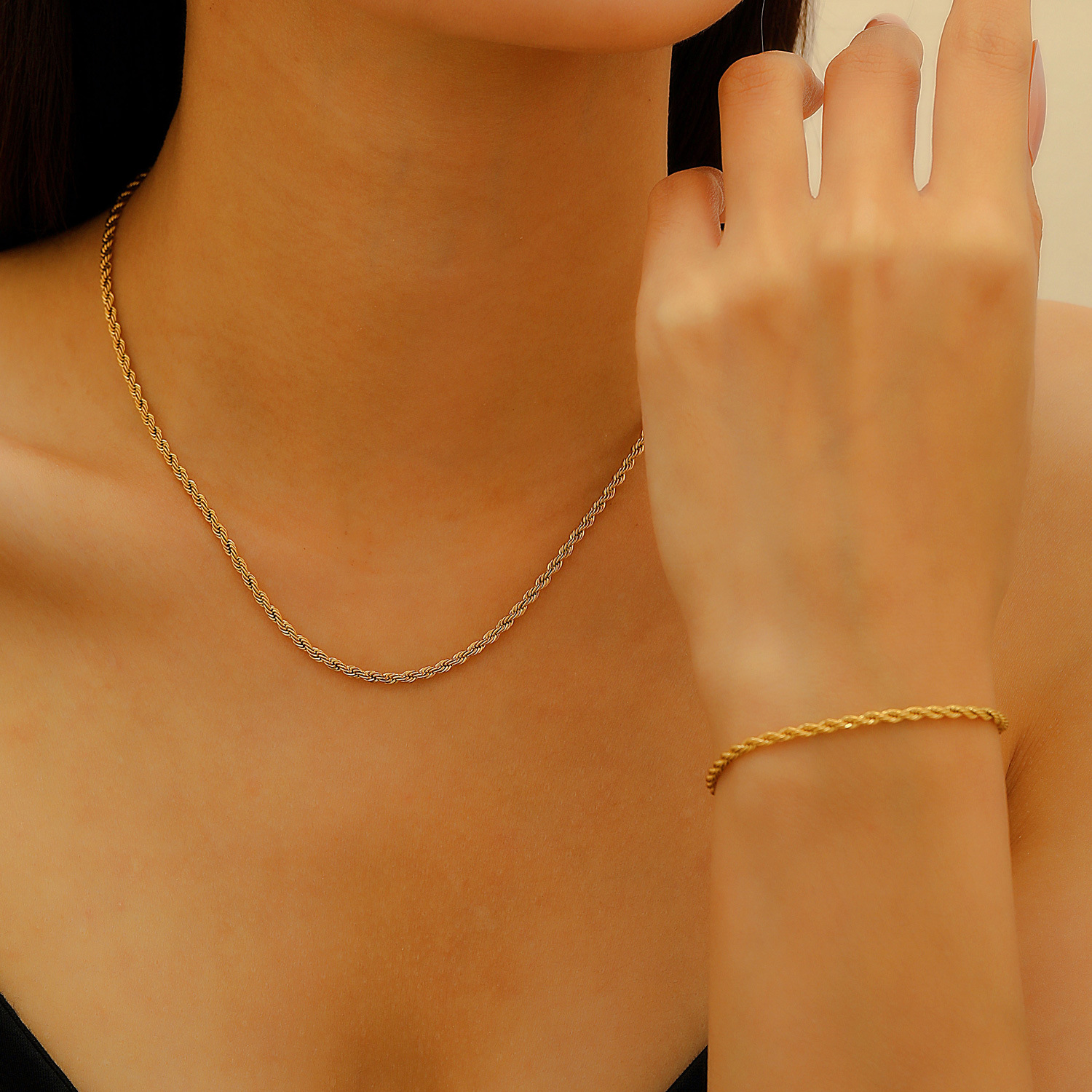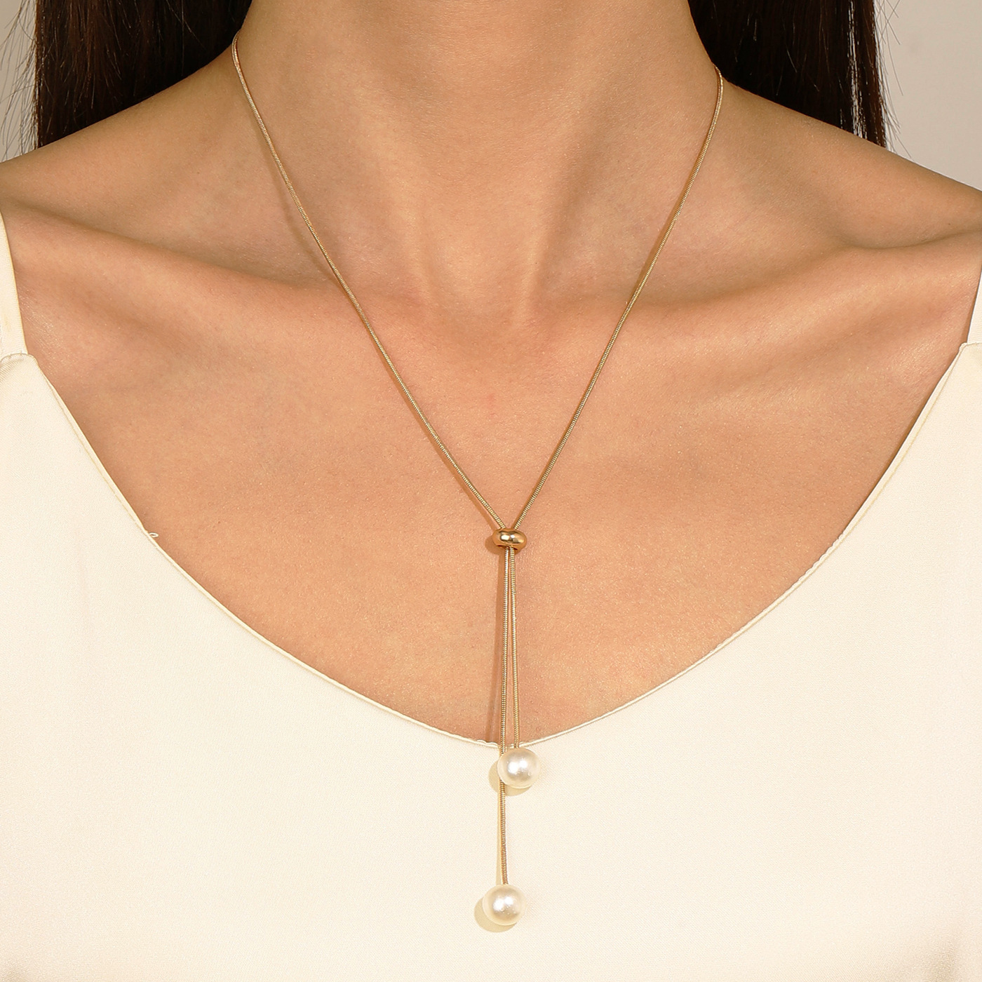 Necklace description: Rope chain stainless steel necklace. the length of the rope can be adjusted and can be used as a sweater chain