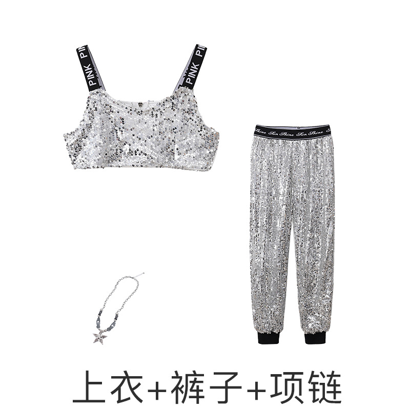 Color: 944 sequin vest 957 white mesh long sleeve 899 sequin trousers star necklace