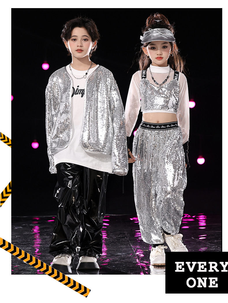 Color: 944 Sequin Vest 957 White Mesh Long Sleeve 899 Sequin Trousers Black Lace-Up Gloves