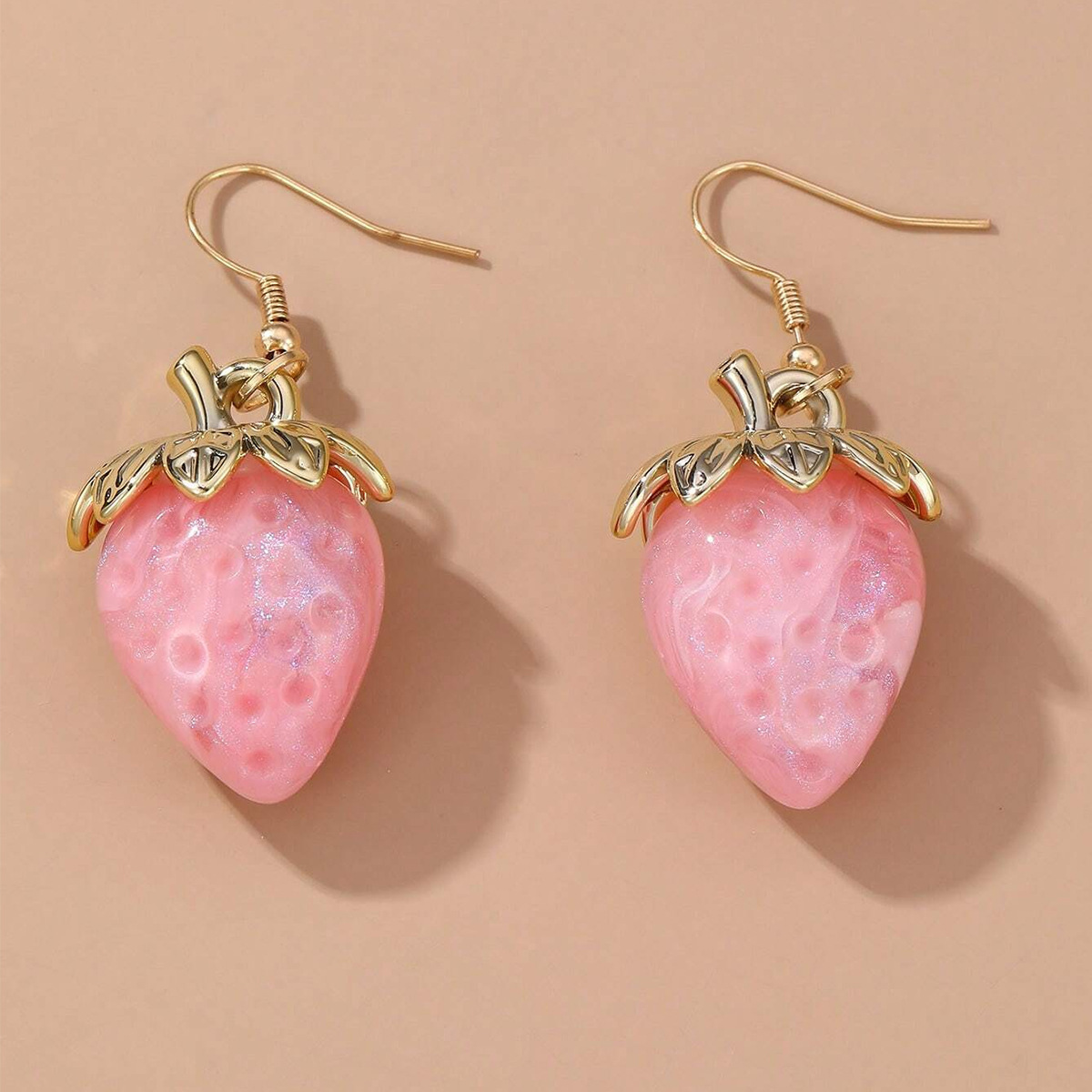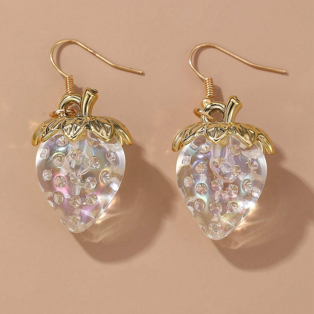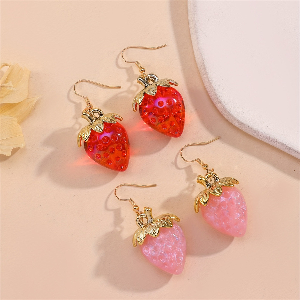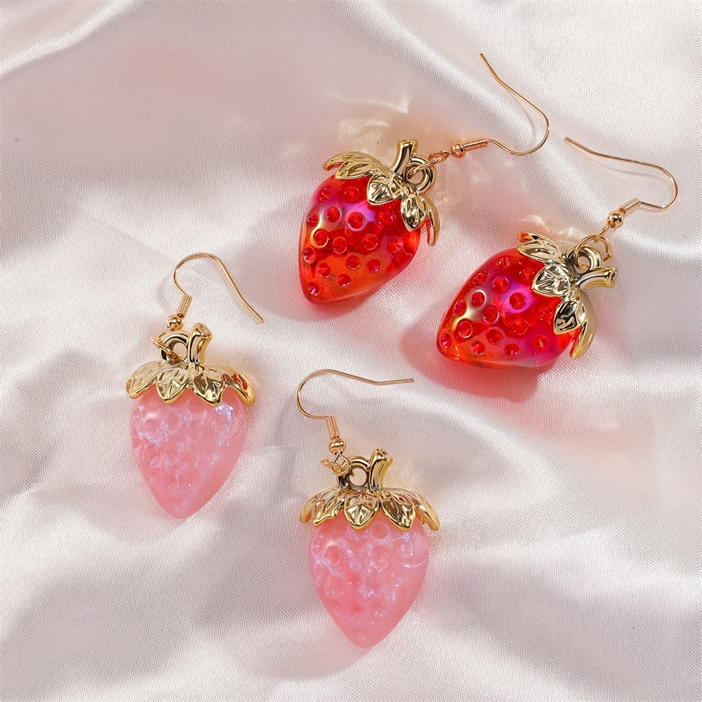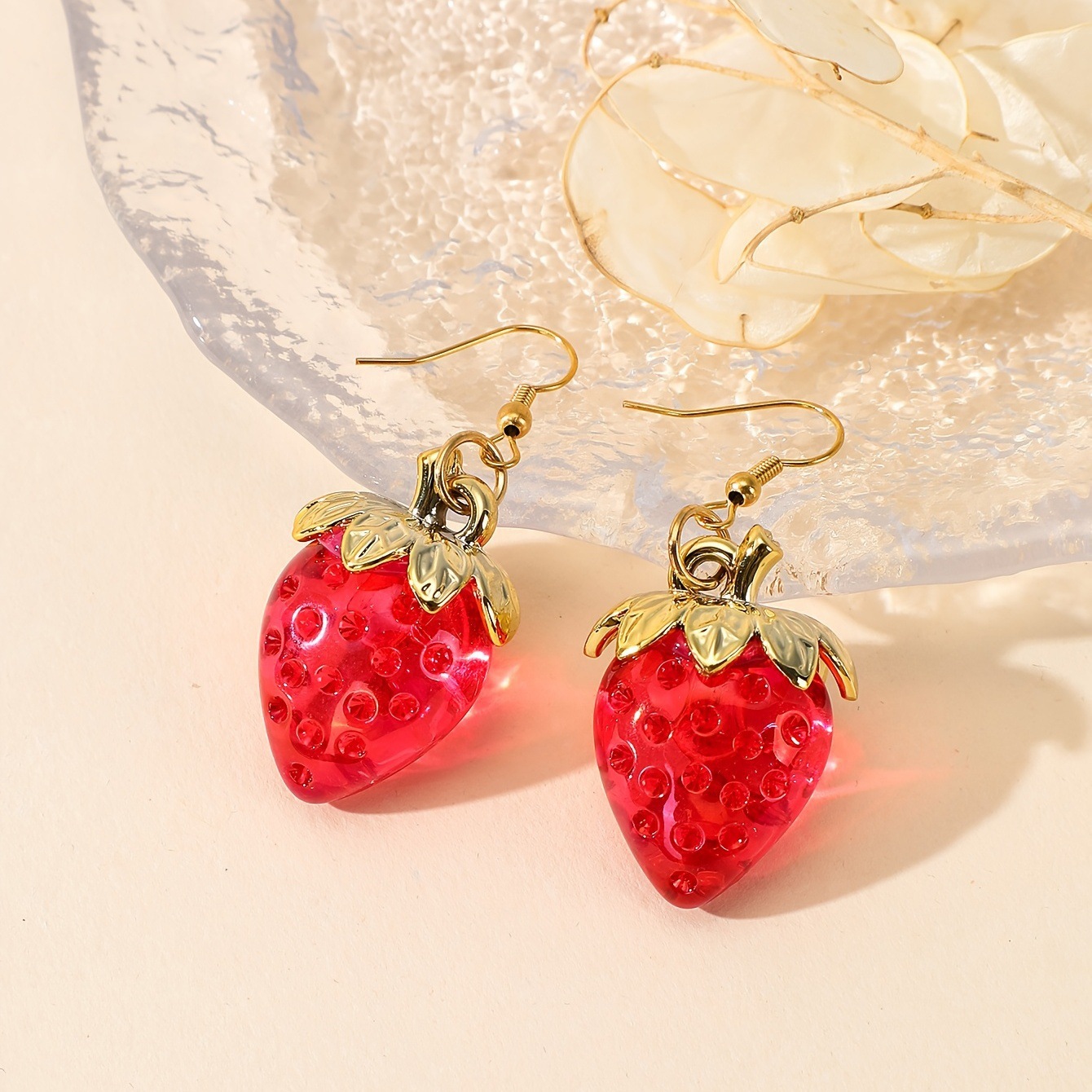 Cross-border European and American cute jewelry sweet strawberry transparent pendant earrings women's fashion strawberry fruit earrings earrings