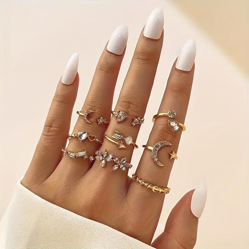 Europe and the United States cross-border explosions combination joint ring creative fashion love moon stars point drill 9 ring suit