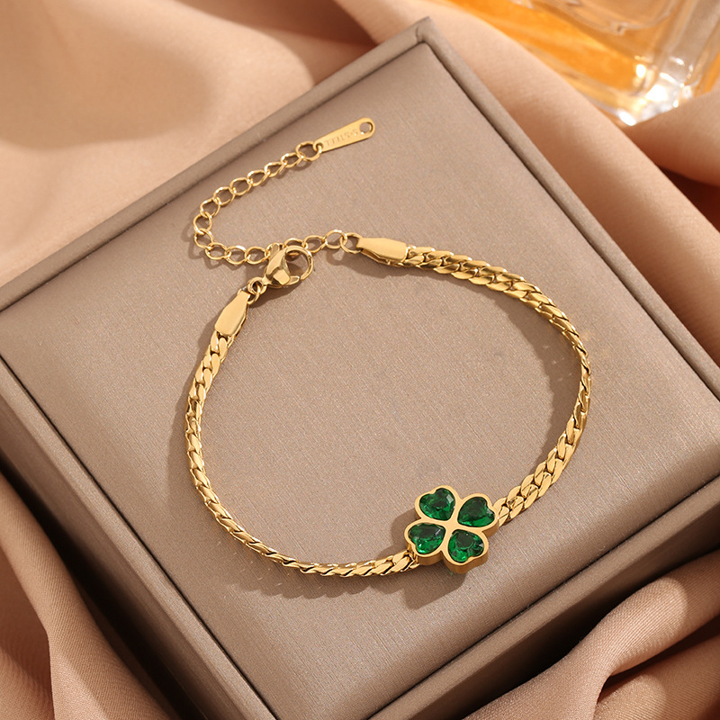 Color: S535 emerald four leaf clover bracelet