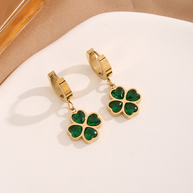Color: E086 emerald four-leaf clover earrings