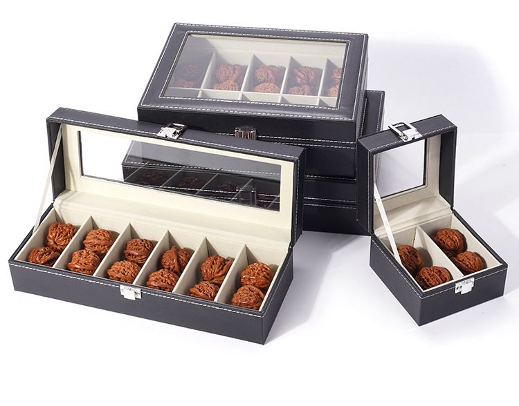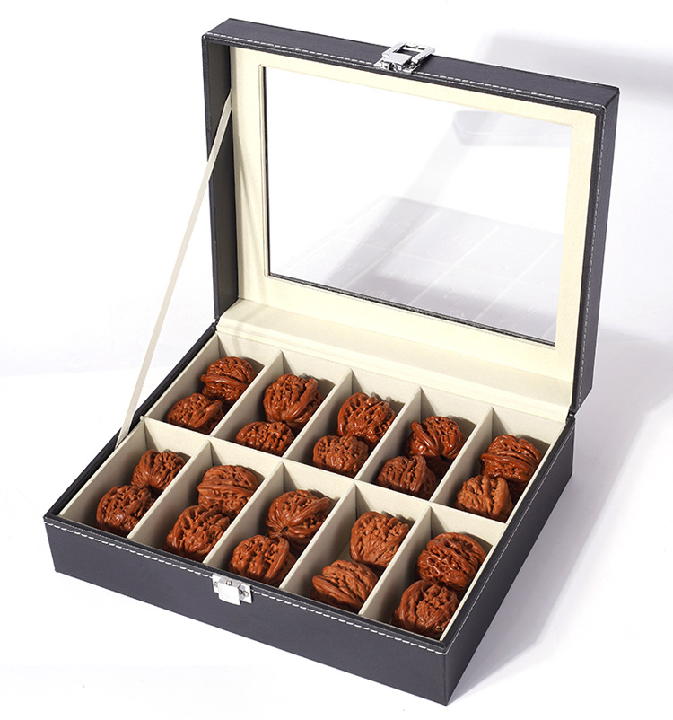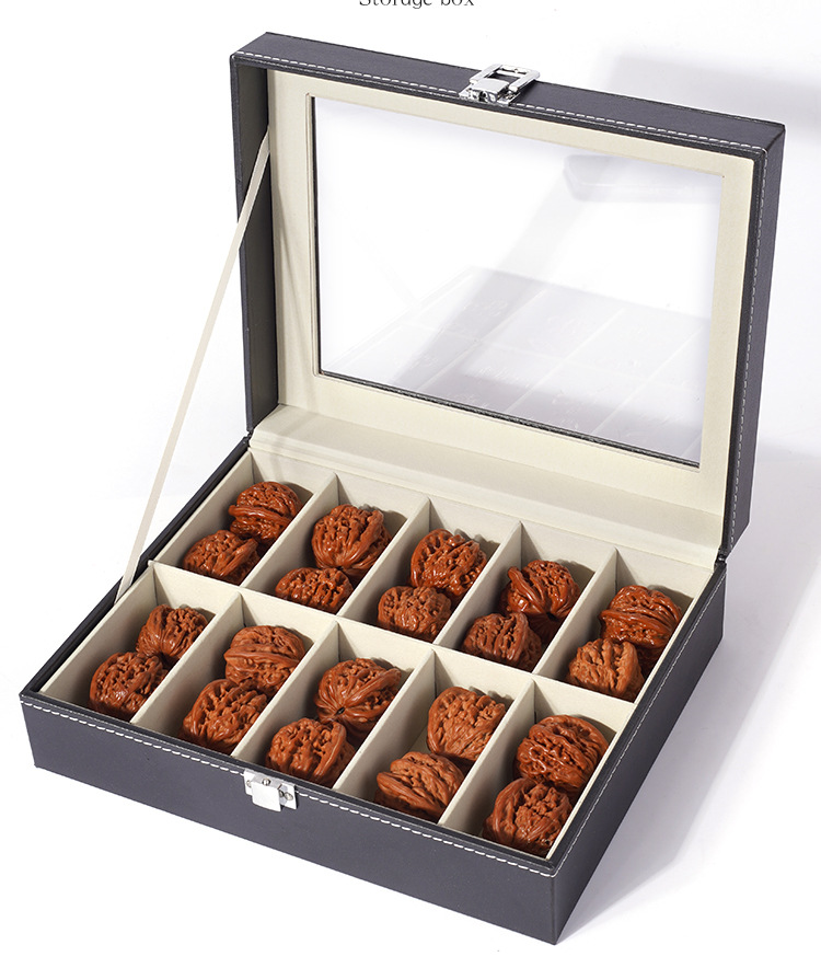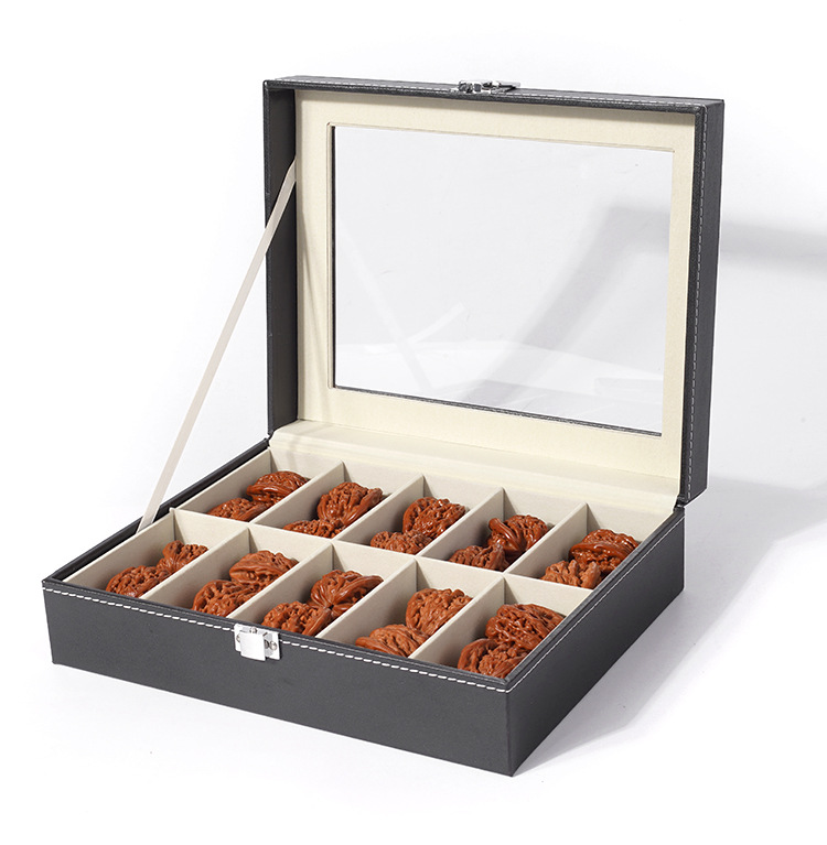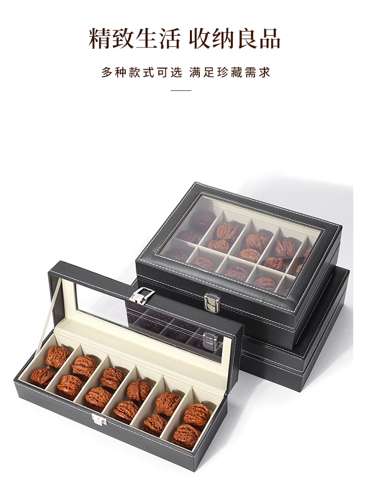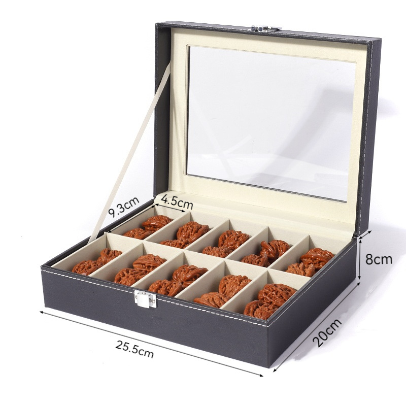 Large-Capacity Walnut Storage Box Household Storage Box Toy Bracelet Long String Storage Box Jewelry Box Glass Lid Box