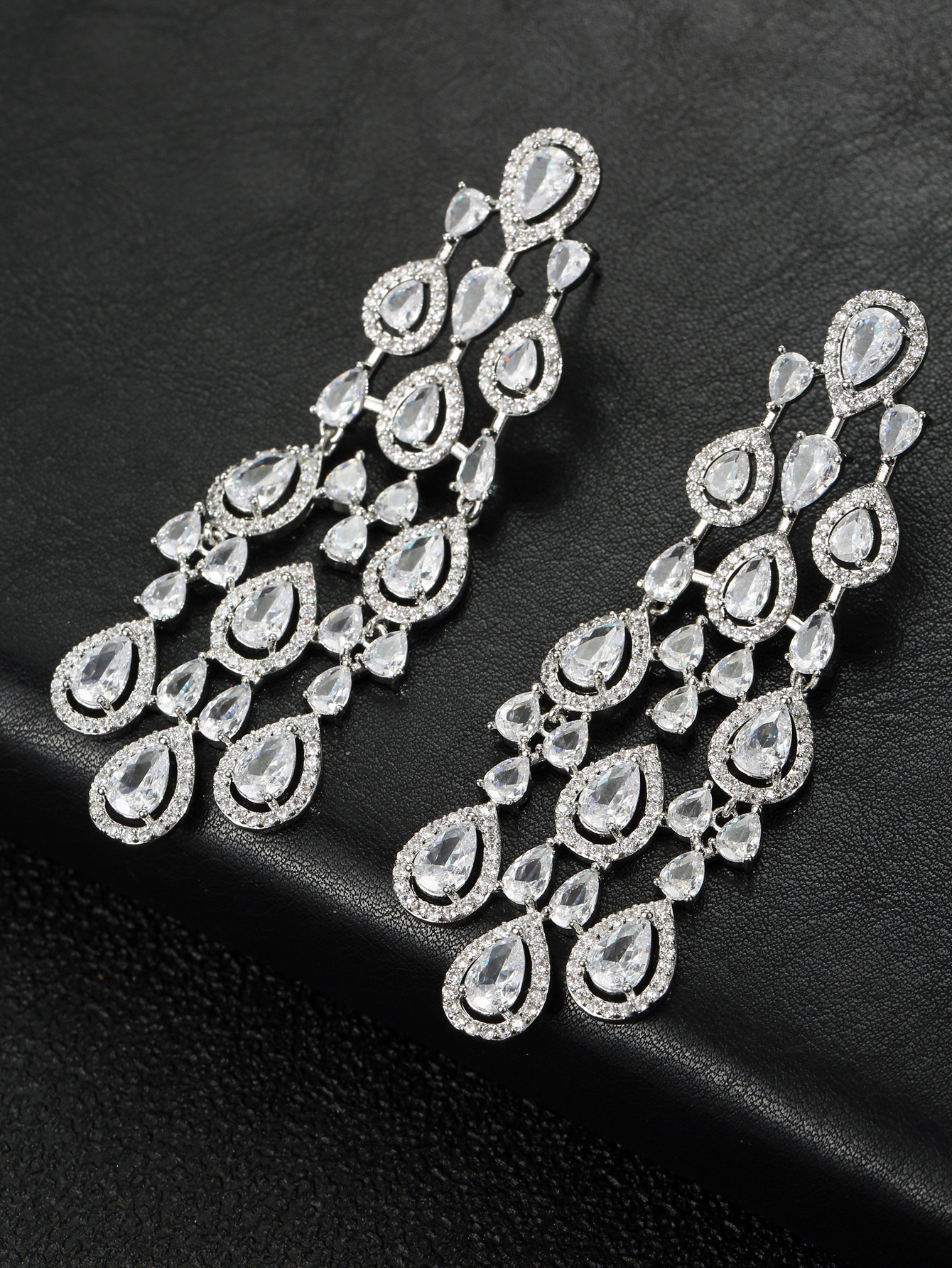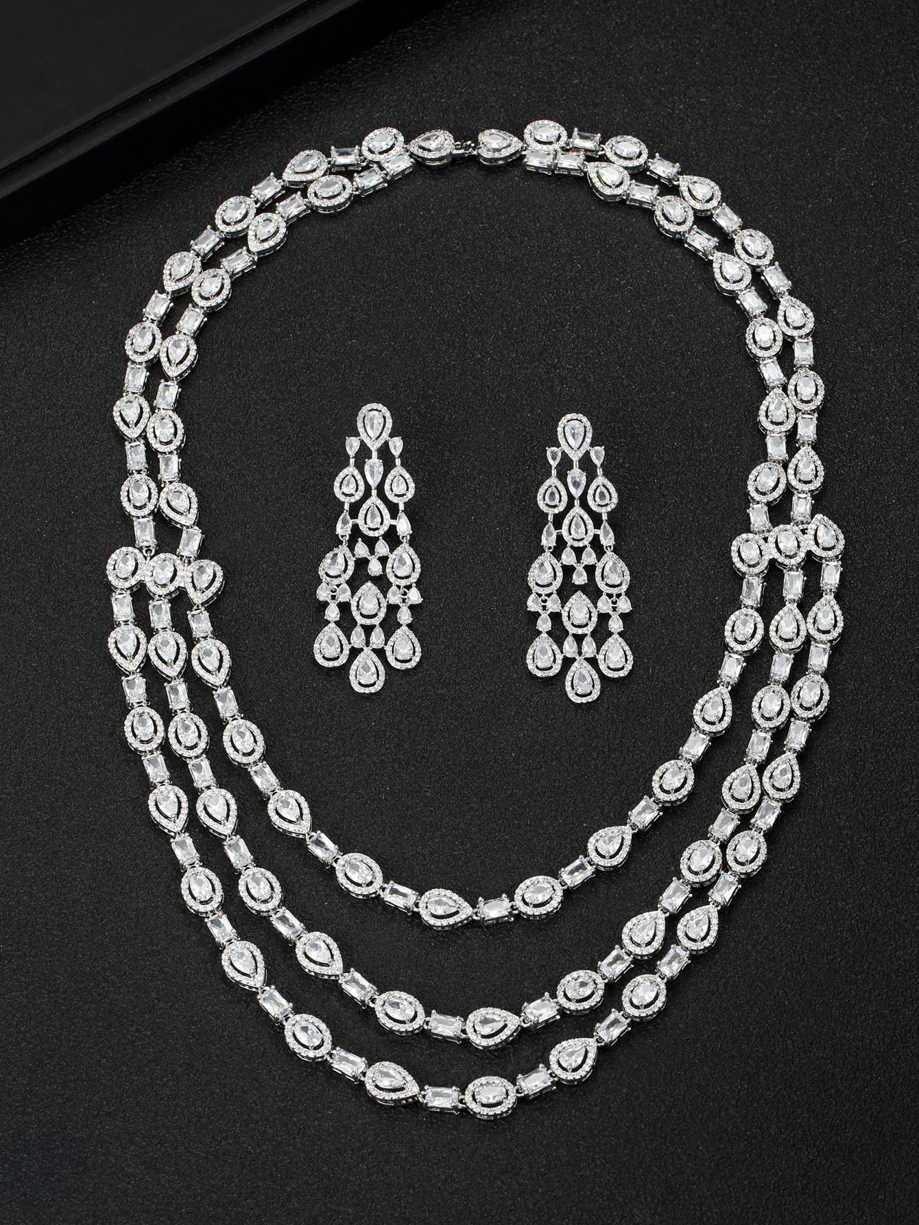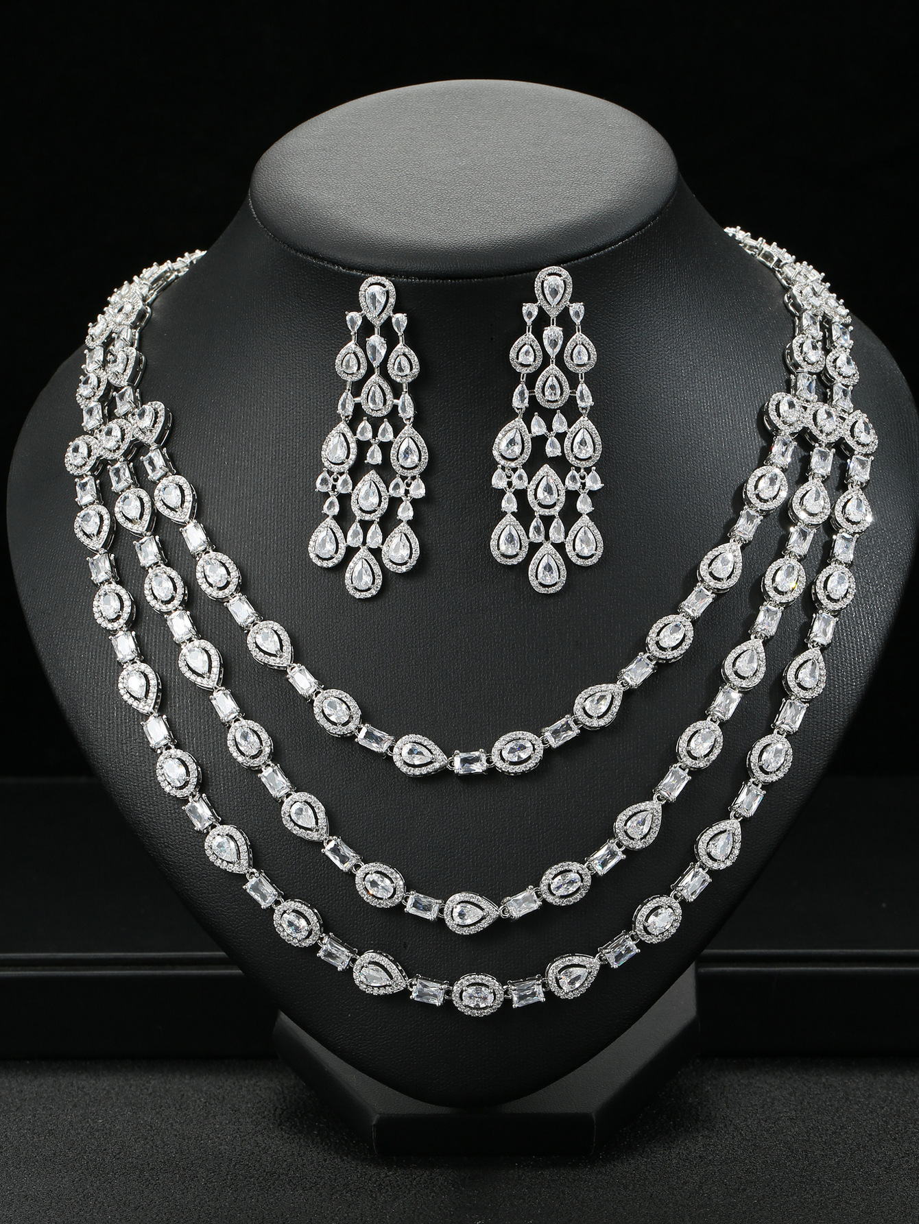 Dubai Exaggerated Luxury Zircon Necklace Earrings suit Bridal Wedding Dress Dinner High Jewelry Festival Wear