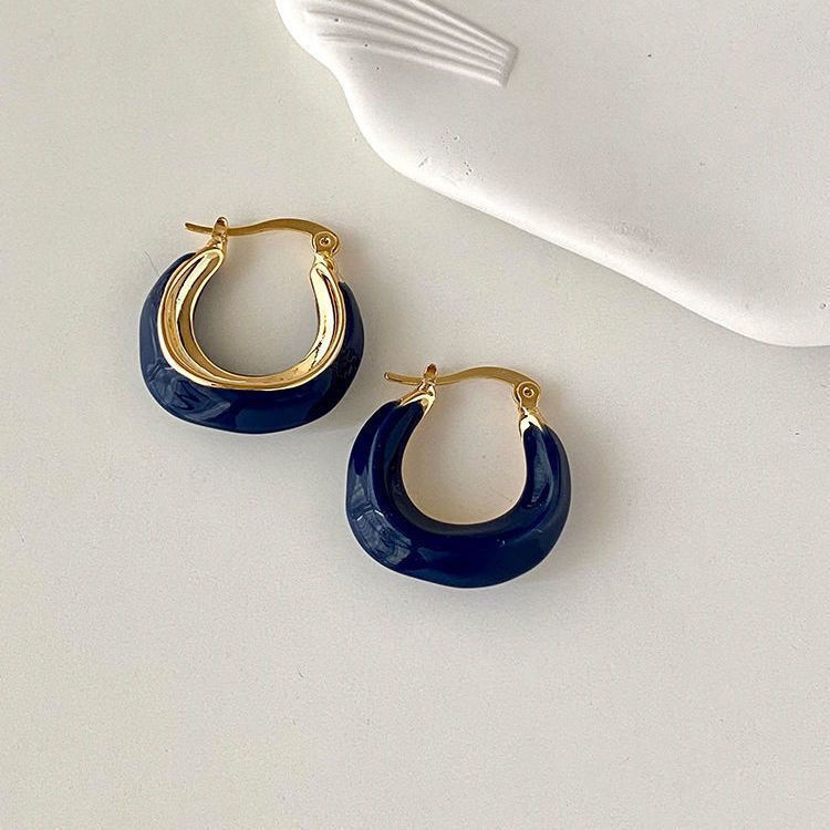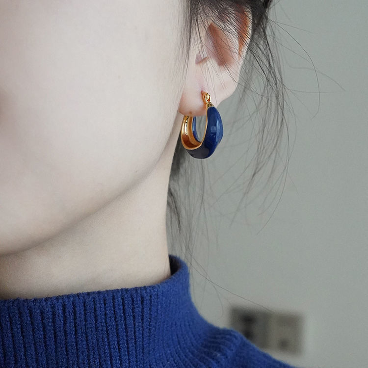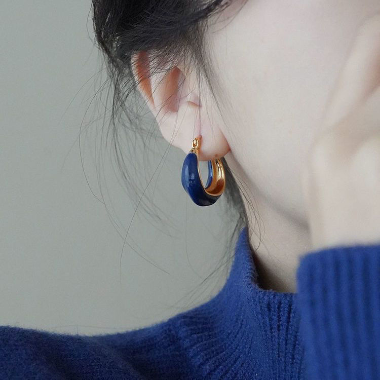 French Retro Klein Blue Earrings Niche Design Temperament High-end Earrings Autumn and Winter Earrings 2023 New