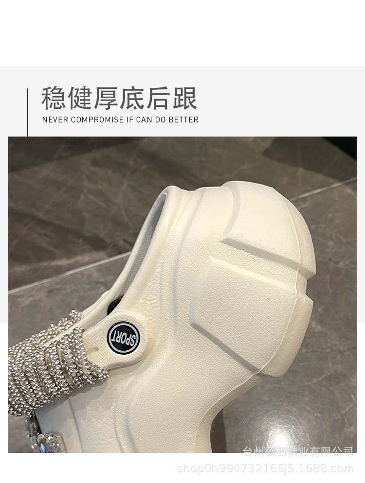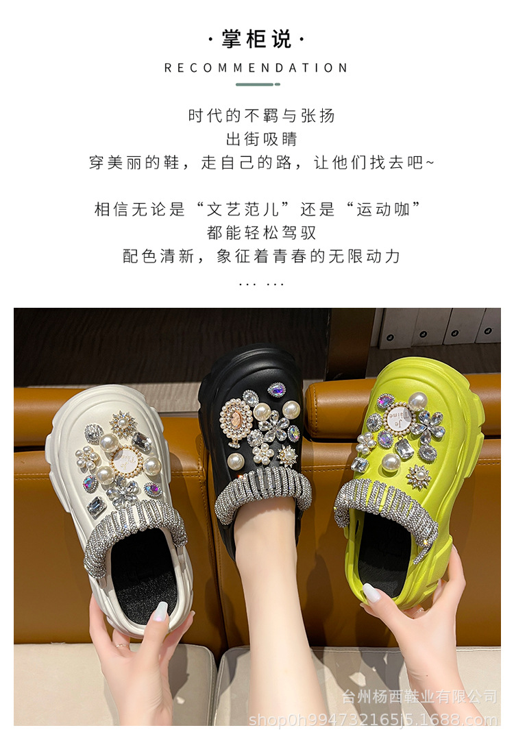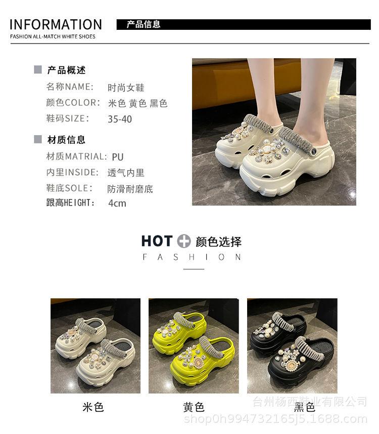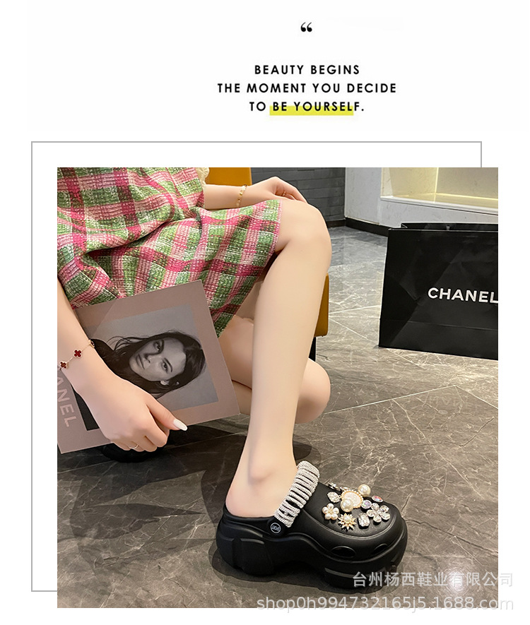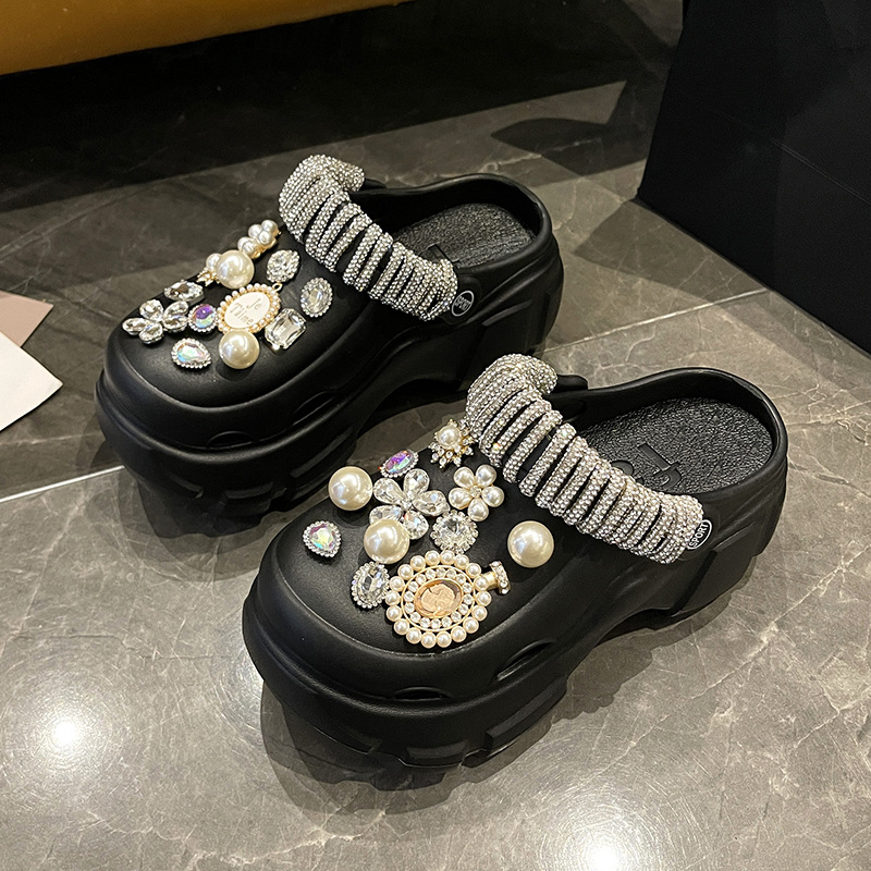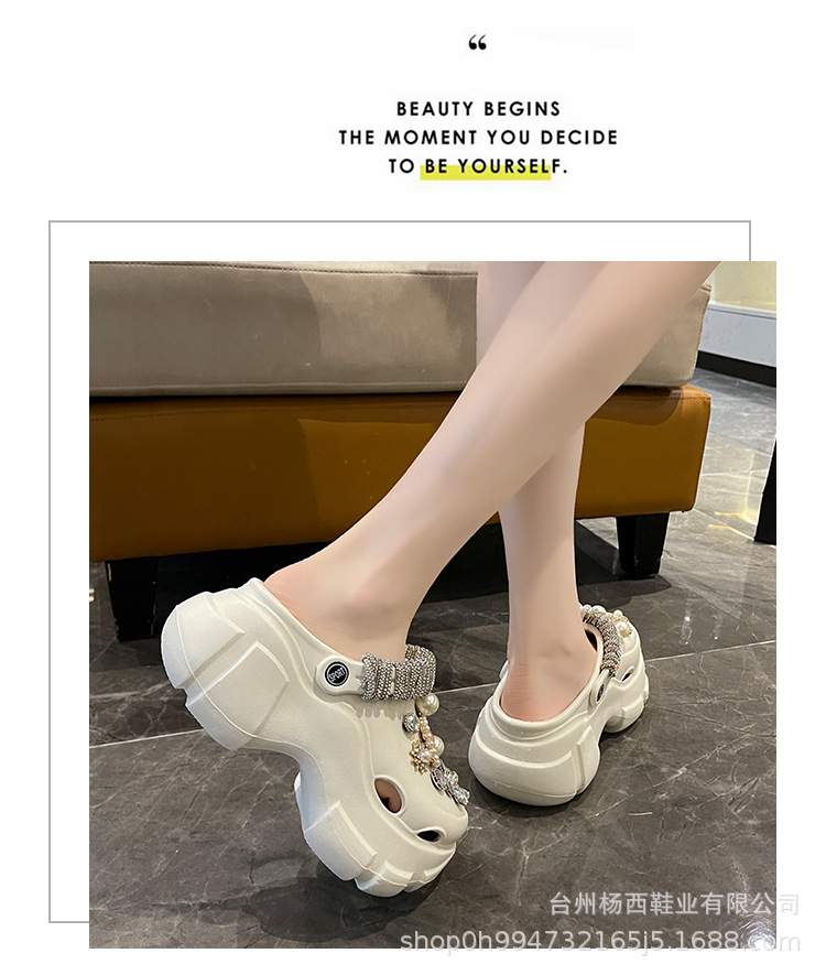 Fashionable thick-soled hole shoes women's summer non-slip outer wear new pearl rhinestone chain heightening muffin beach sandals