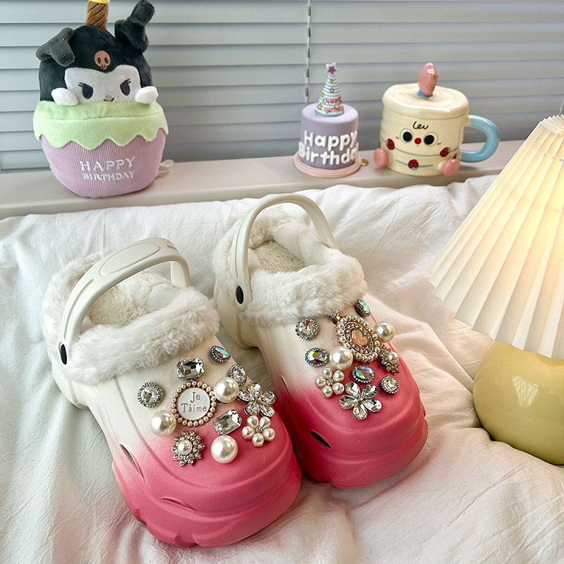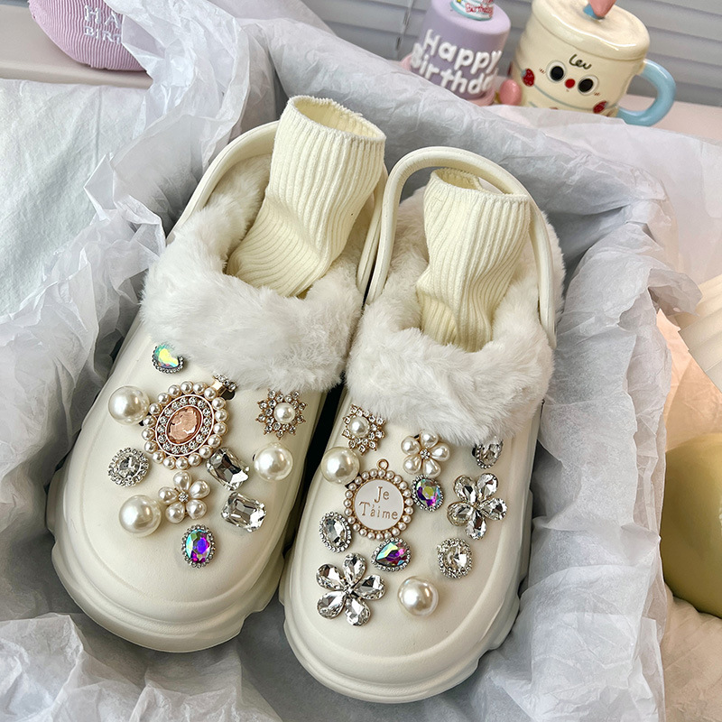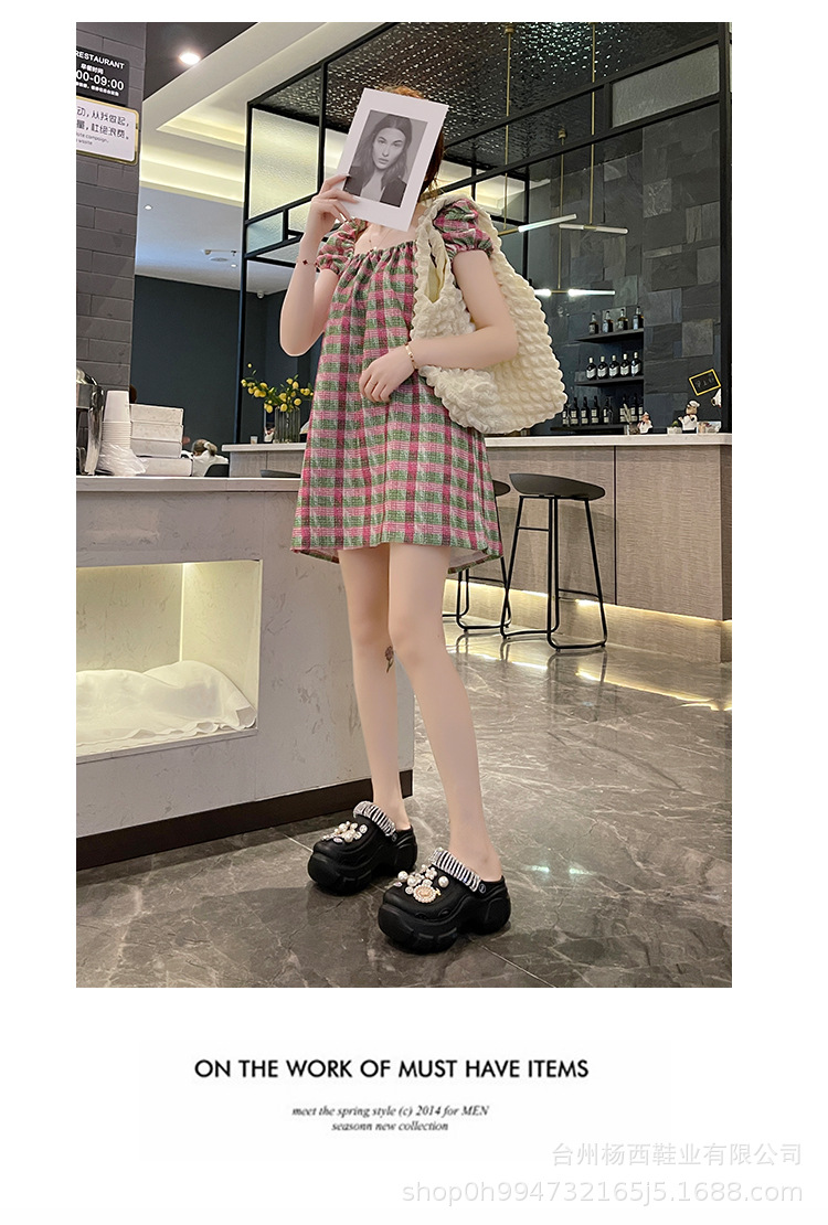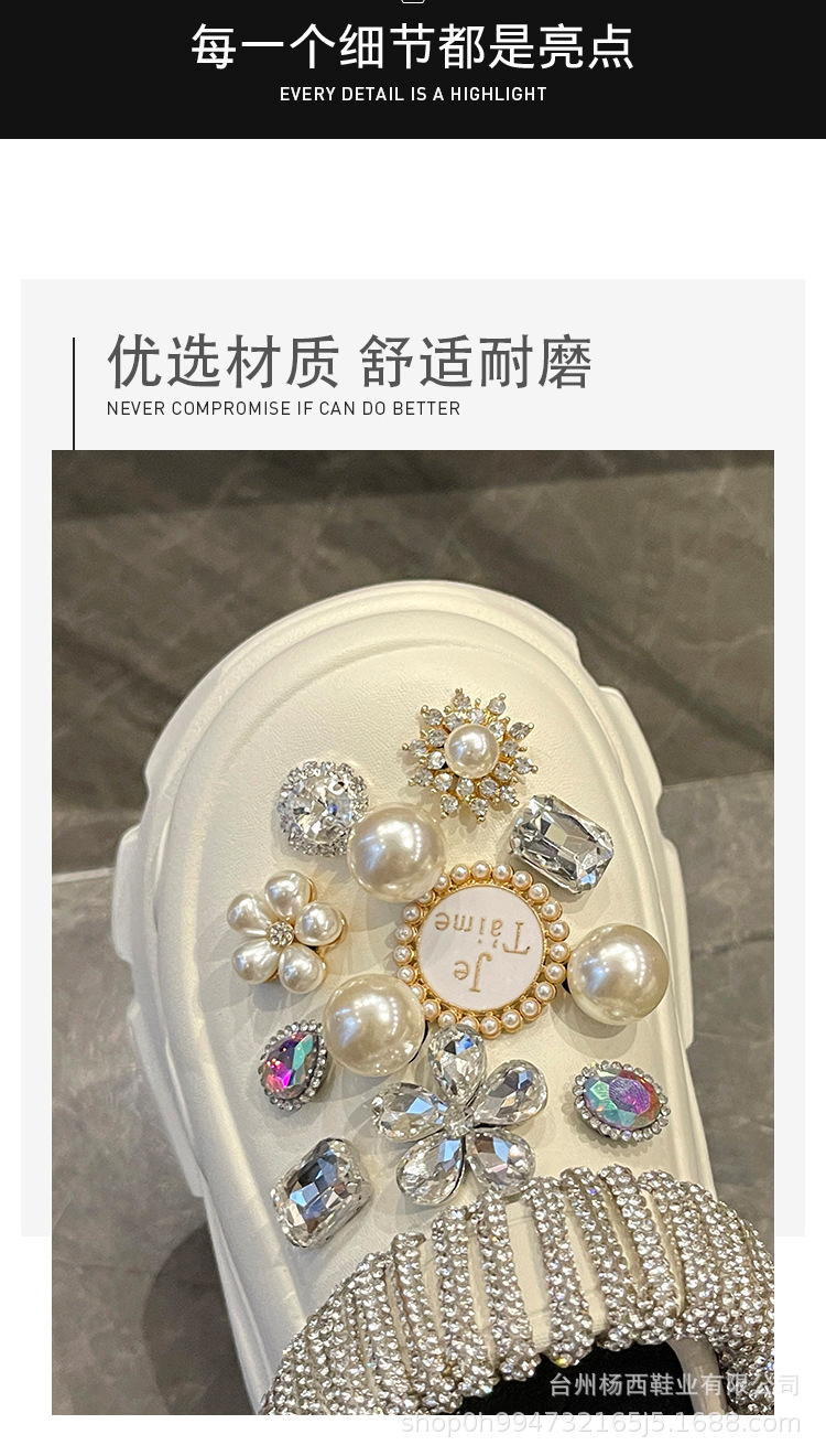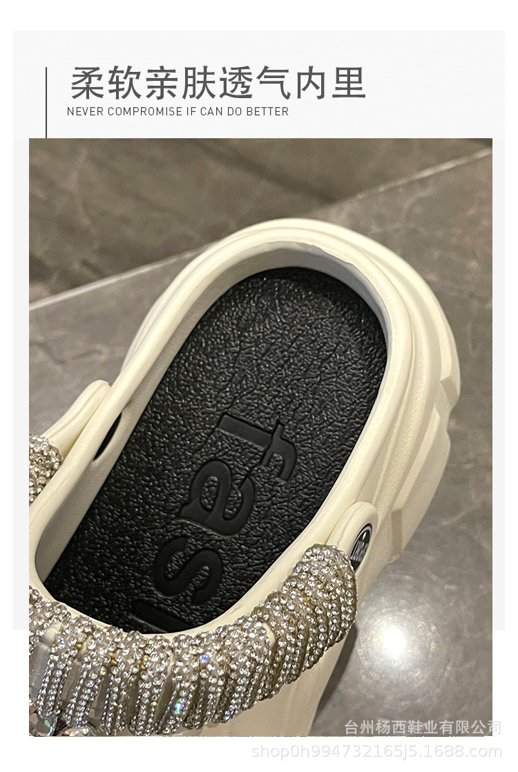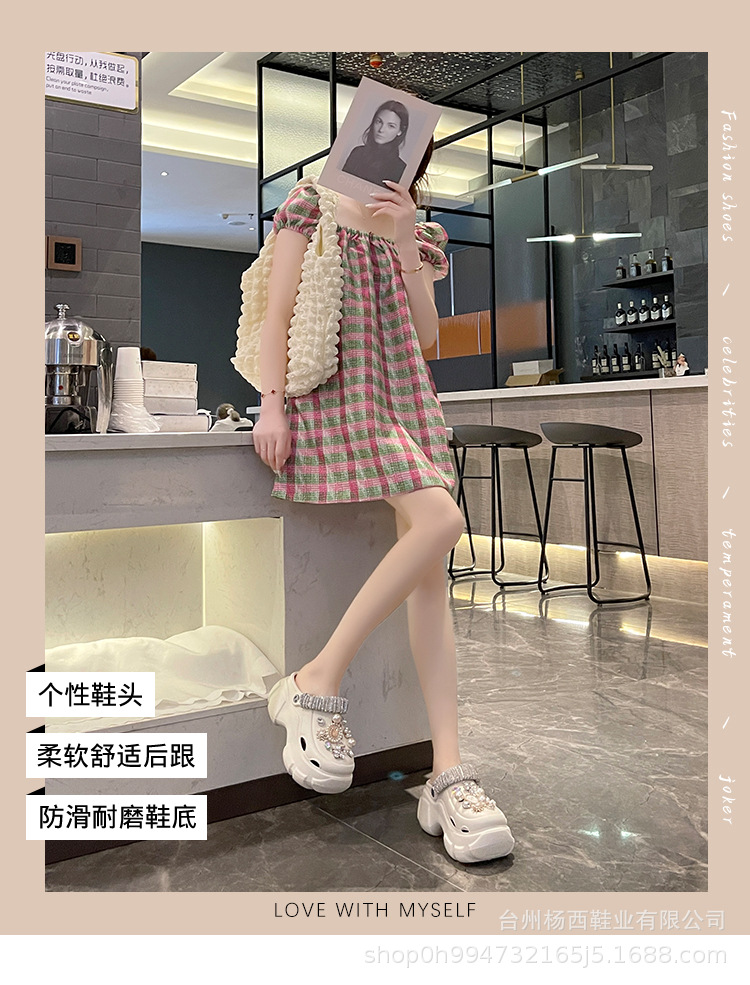 Fashionable thick-soled hole shoes women's summer non-slip outer wear new pearl rhinestone chain heightening muffin beach sandals