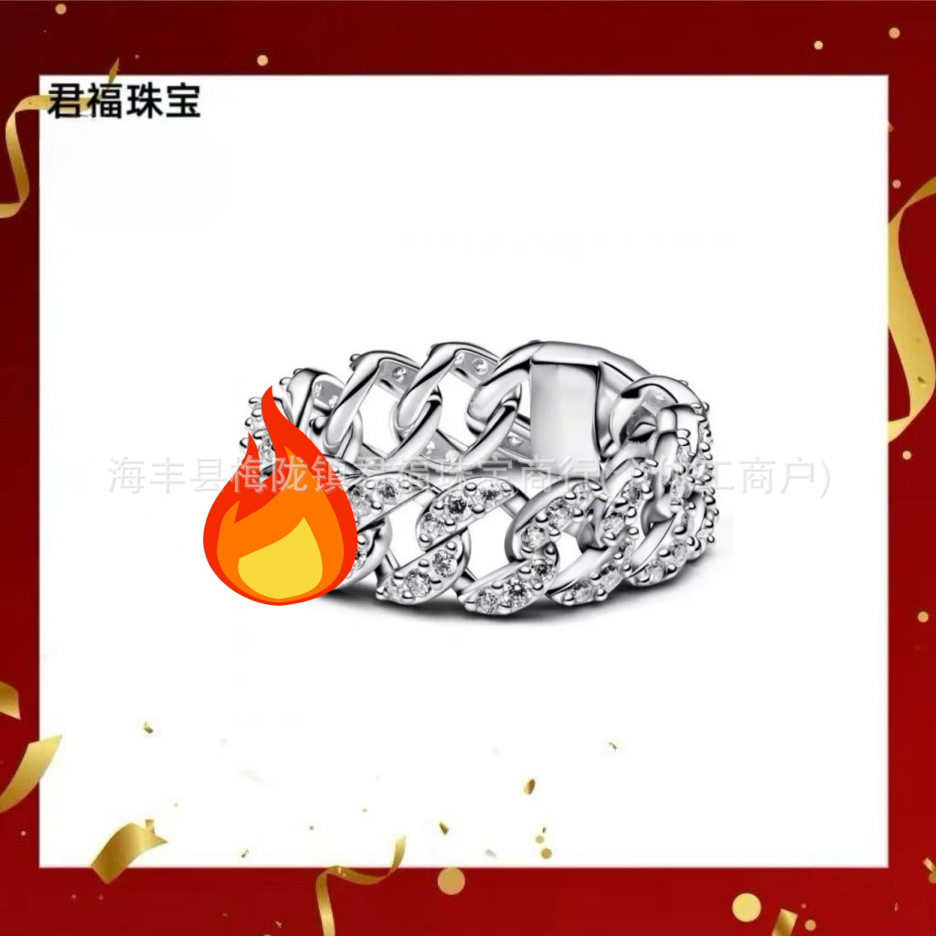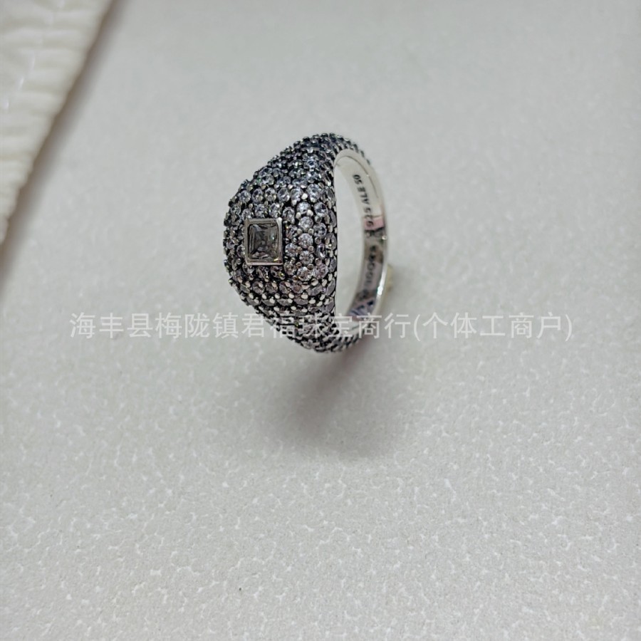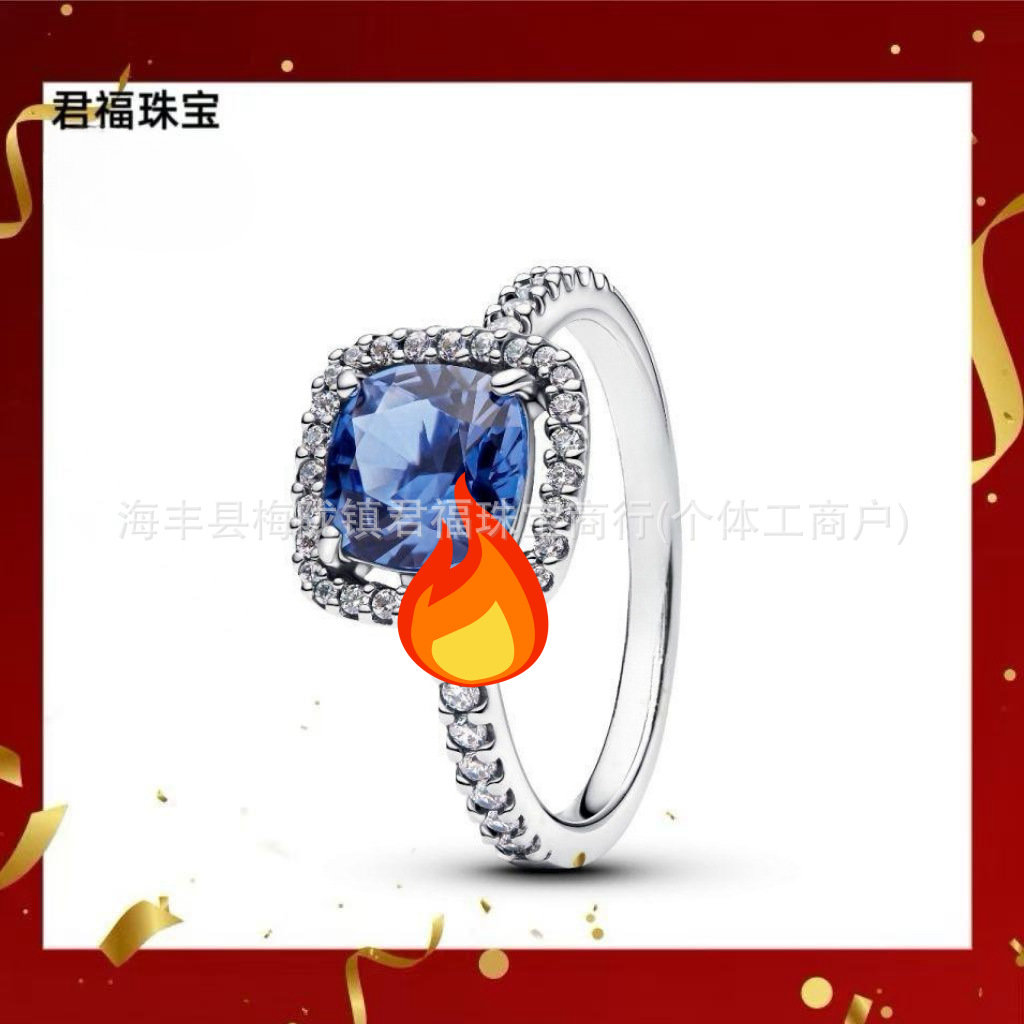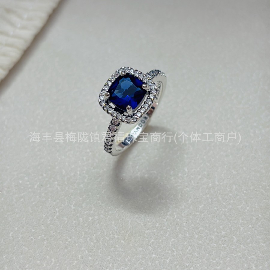 Pandora Ring White Copper Silver Plated Sparkle Ribbon Starlight Butterfly Ring Square Blue Cuban Chain Ring