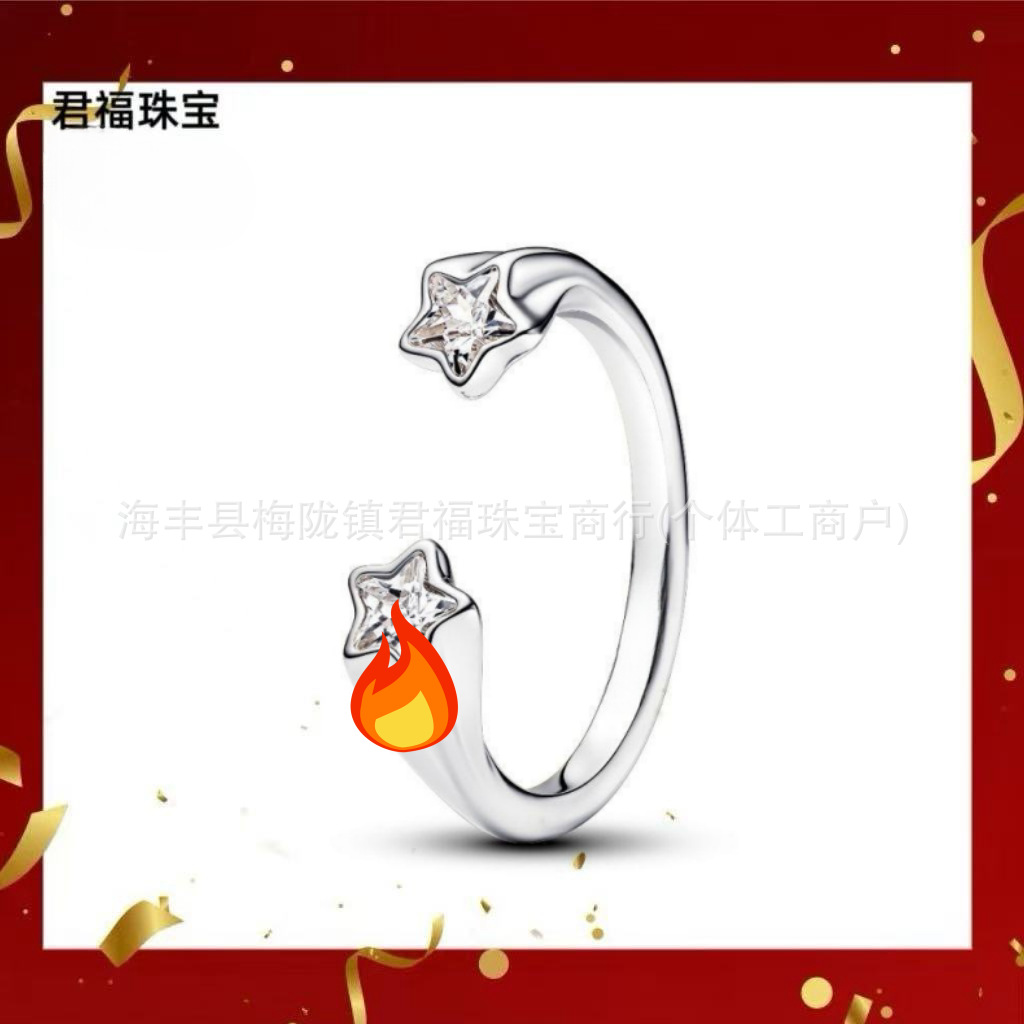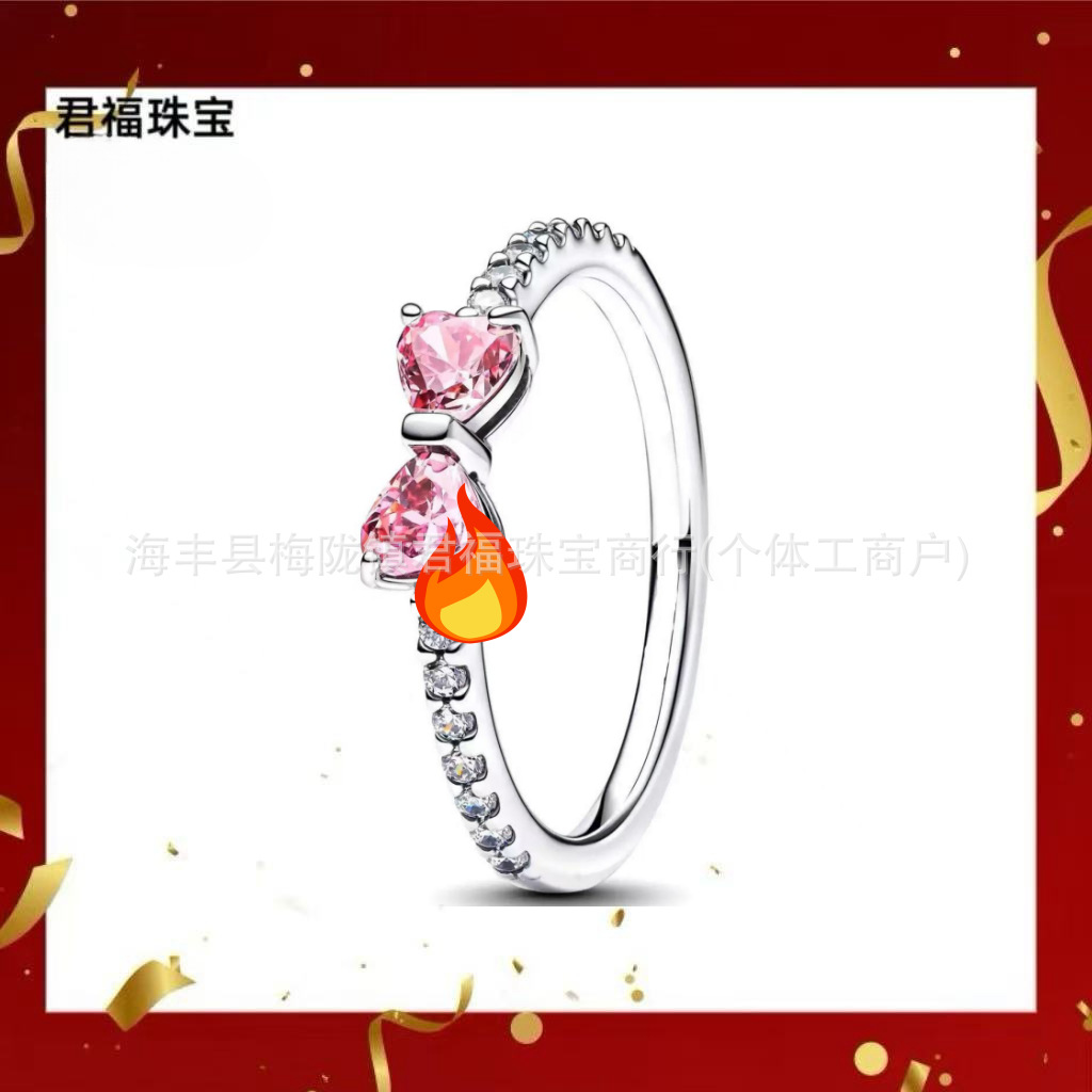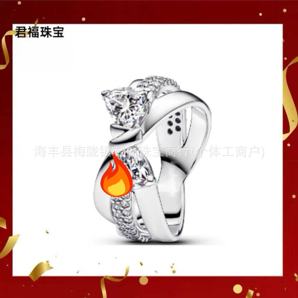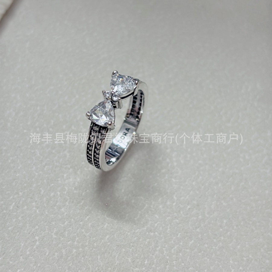 Pandora Ring White Copper Silver Plated Sparkle Ribbon Starlight Butterfly Ring Square Blue Cuban Chain Ring
