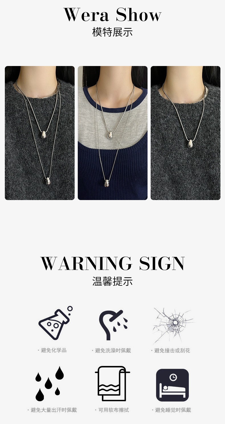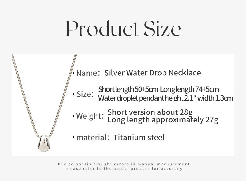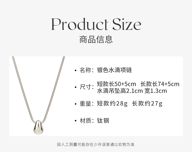 Size: Short length 50+5cm long length 74+5cm water drop pendant height 2.1cm width 1.3cm